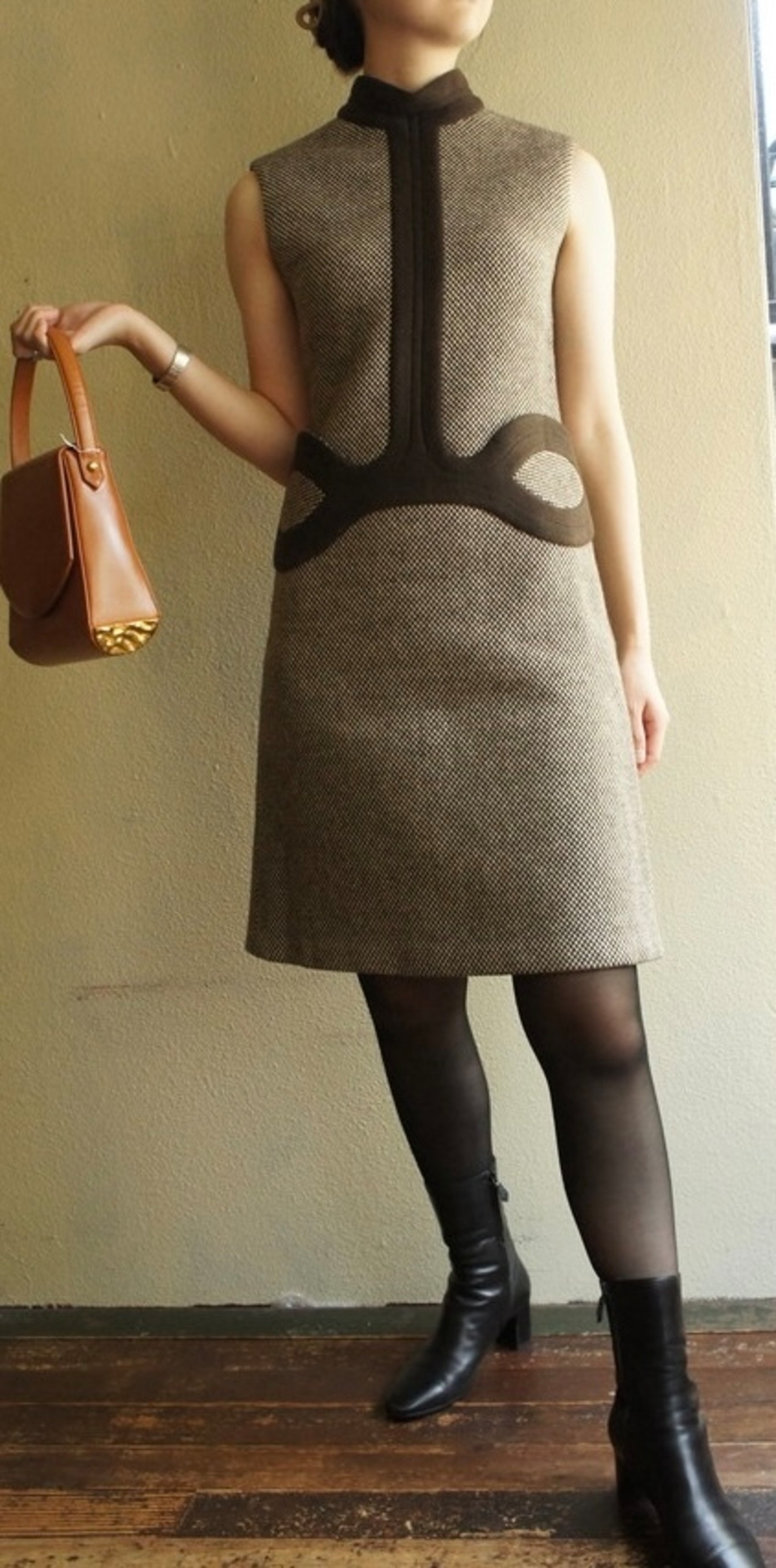 Pierre Cardin 60-70’s “Brown block check ” Sleeveless One-piece