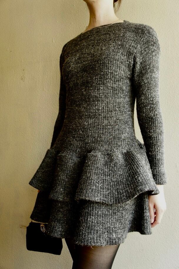柔らかなニットが体のラインを綺麗に包み込み、ミニ丈のボリュームのあるスカート部分がとても美しいLINE。