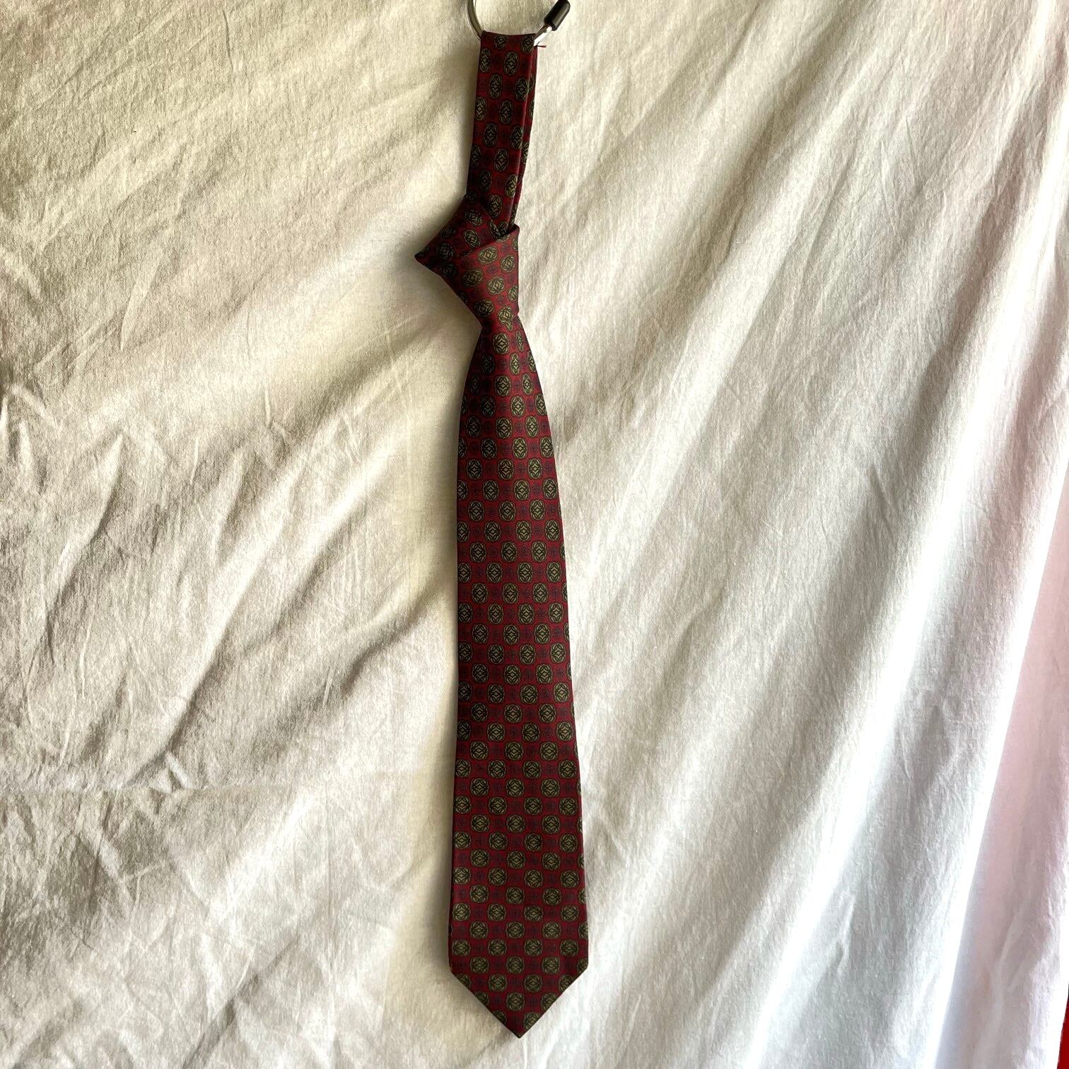 上品なワインレッドにアナグラムが高級感溢れるLOEWEネクタイ。ワインレッドとグレーの組み合わせが落ち着きがあり使いやすさもGood。デイリーにもフォーマルにもオススメです。