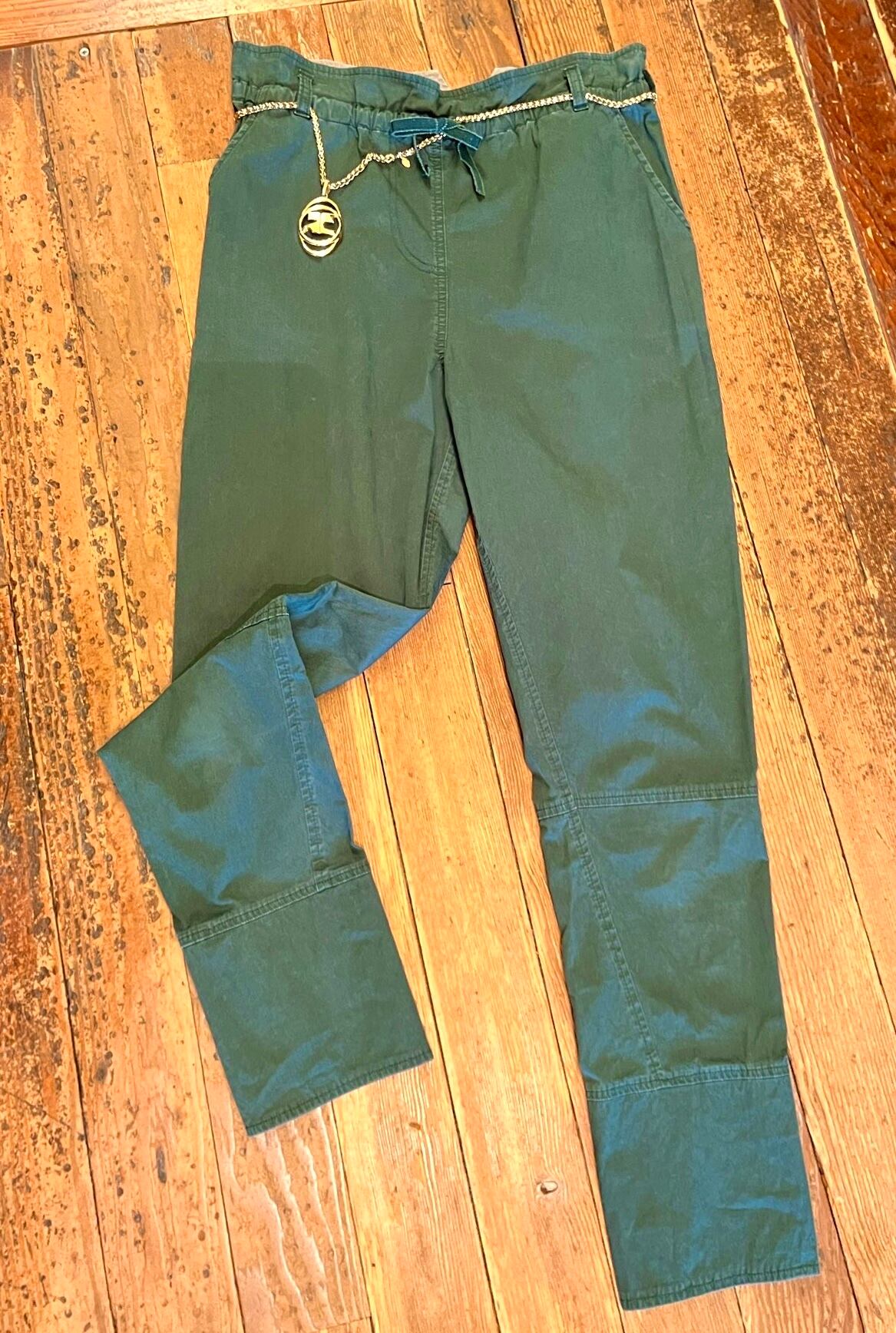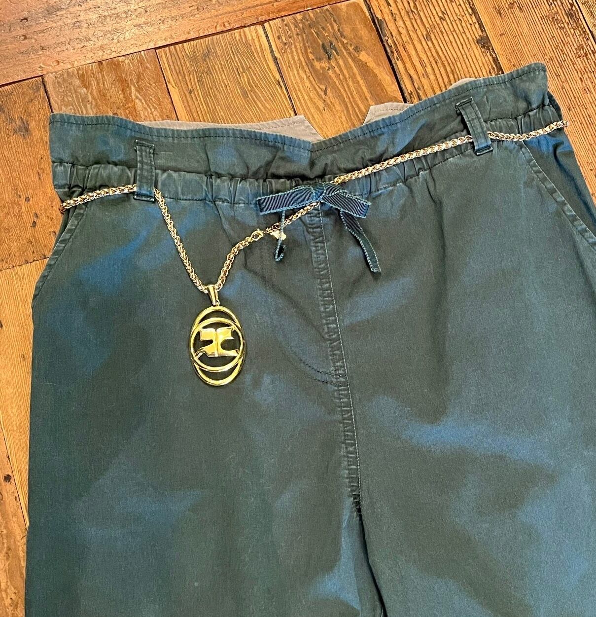 二重になった円形の中に大きなロゴがゴージャスな雰囲気漂うCourregesのロングネックレス!ひねりのある入り組んだチェーンが美しく2連にしてもcute☆