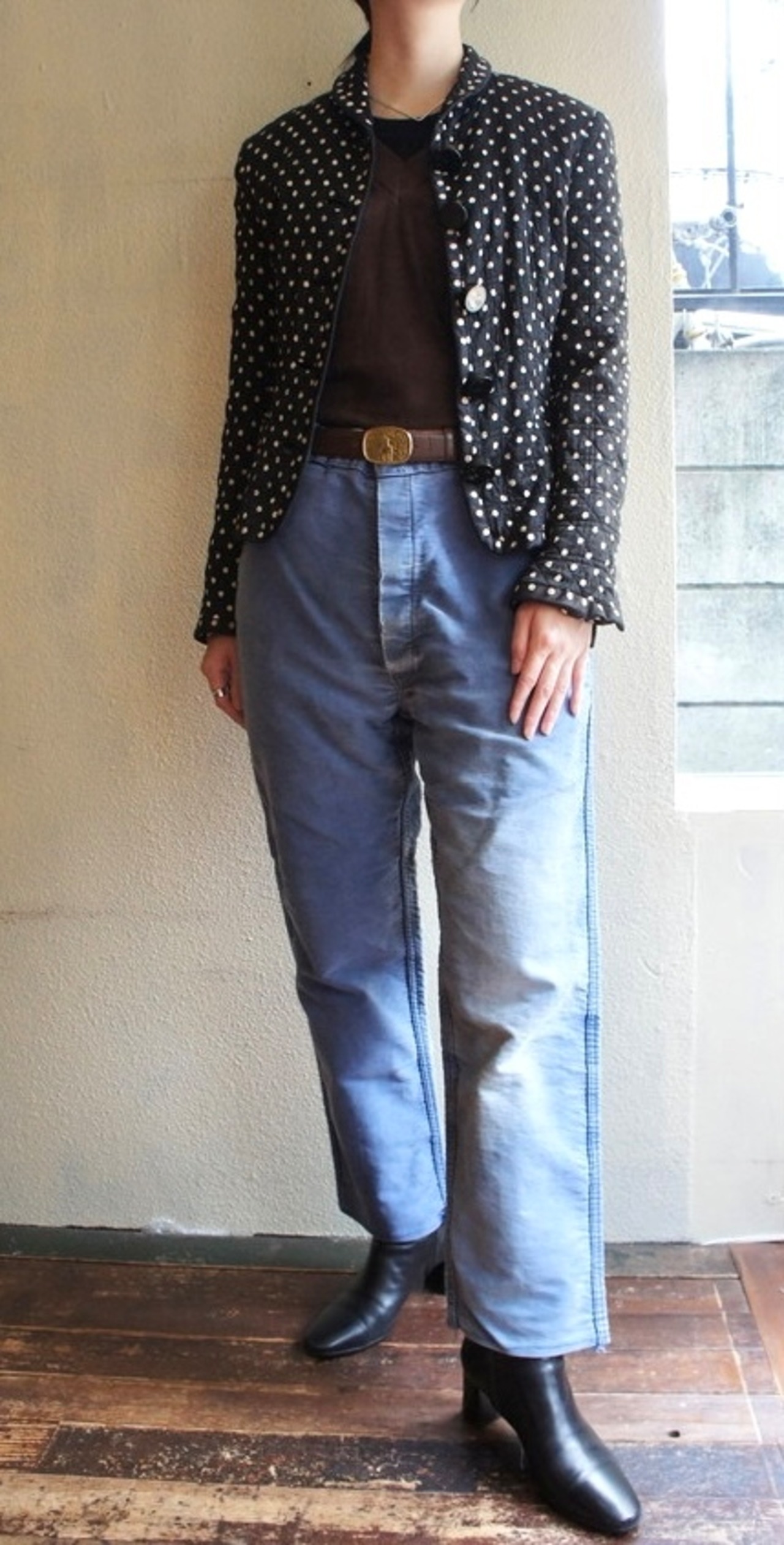*当店で扱う古着、古物につきまして、経年に伴う変色やキズ等は、返品の対象及び不良品となりません。一見して目立つものは説明文や写真で紹介していますが、当店で目立たないと判断したものについては説明を省いております。
