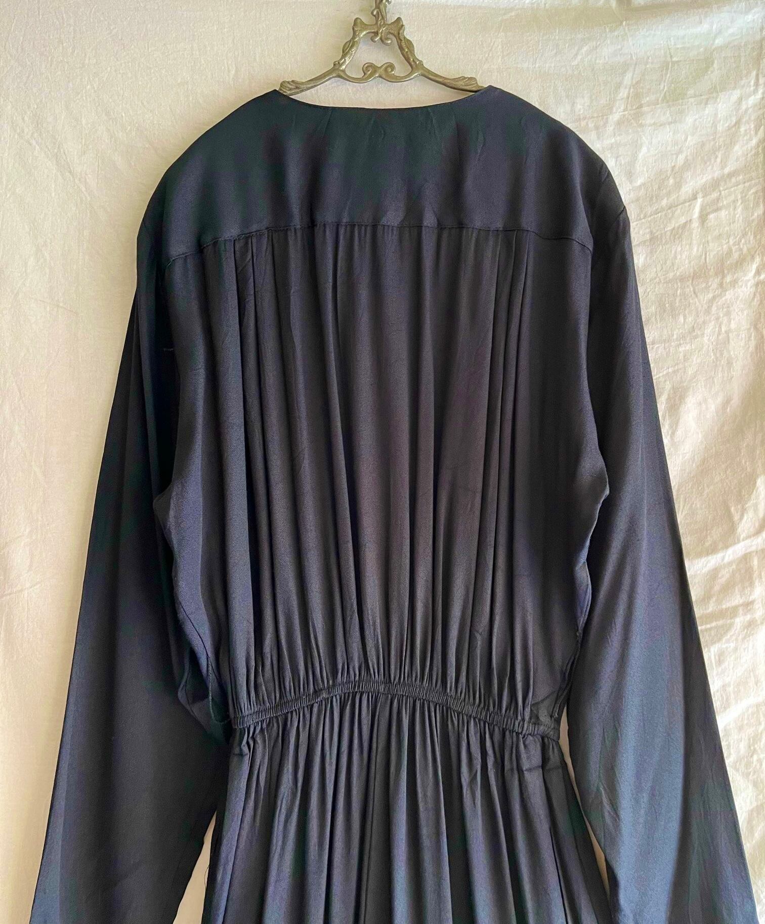 さらっとした薄地で、ノーカラーに肩からのタックラインや、背中、ウエストの細かいギャザーがとても美しい一品。