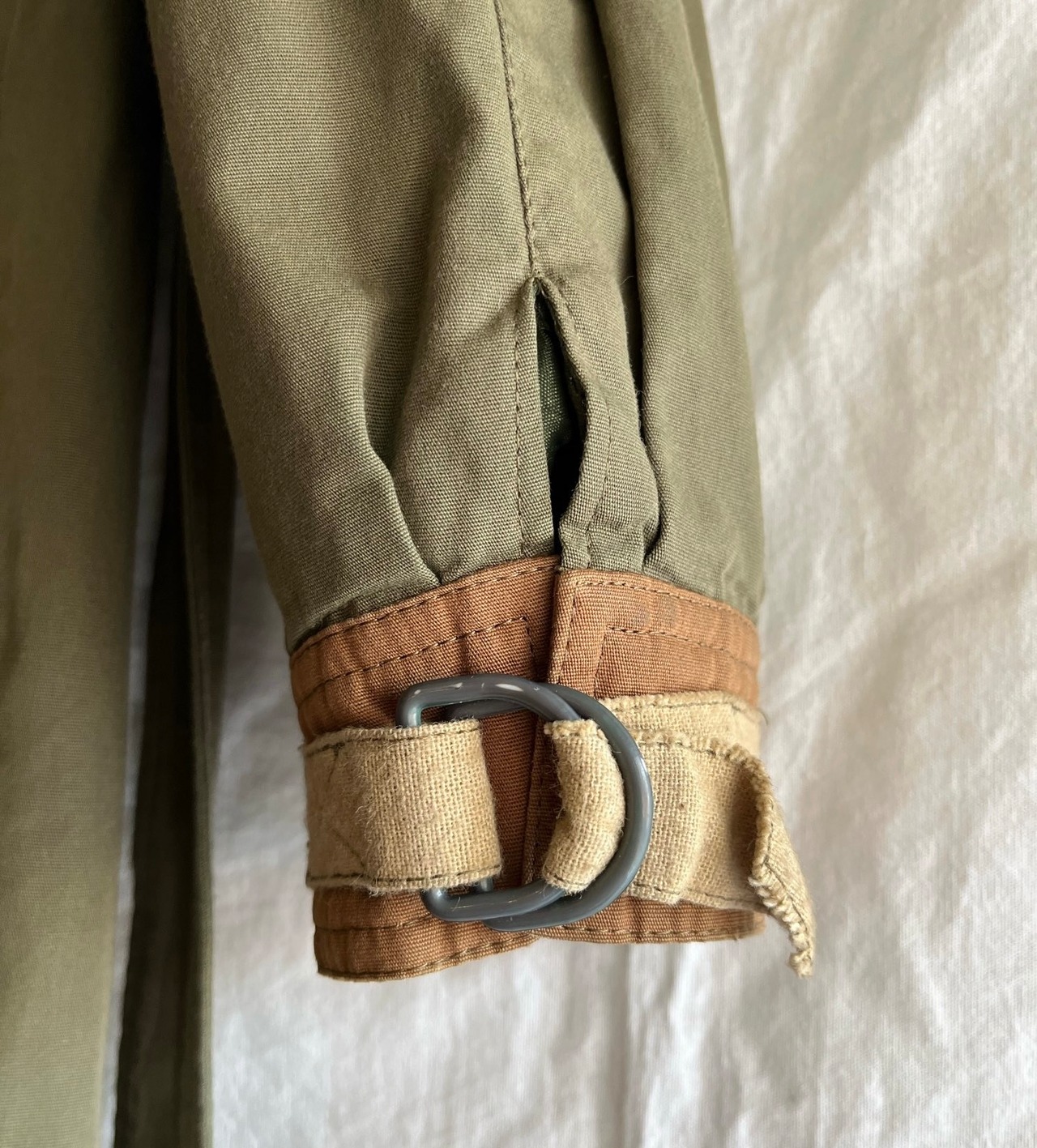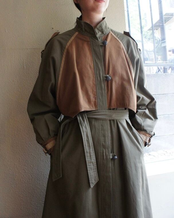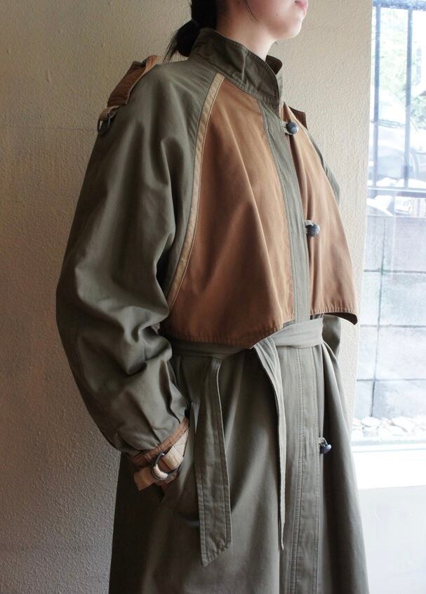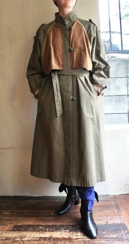 カーキベースにブラウンのバイカラーの組み合わせのミリタリーテイストある70~80’sコート。