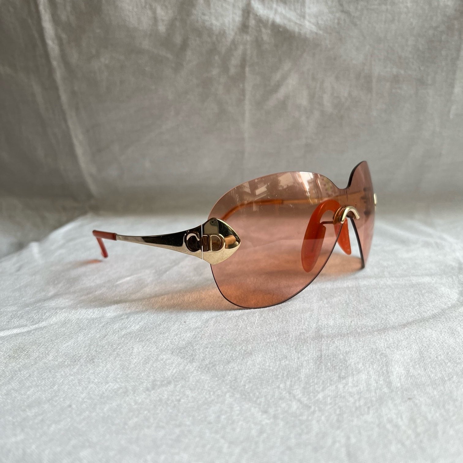 ピンクオレンジのレンズにゴールドのメタルアームがcuteな2000年, JOHN GALLIANO デザインの Diorサングラス!ティアドロップ型のクリアなビタミンカラーのレンズのサイドにはCDの文字がポイント。絶妙なバランスがスポーティかつ、スタイリッシュで今のモードにハマる一品です。