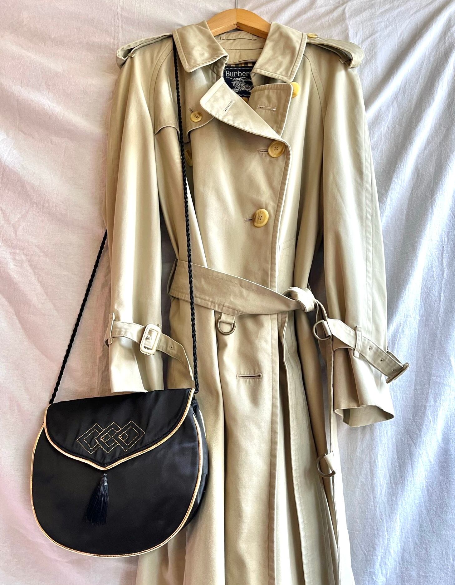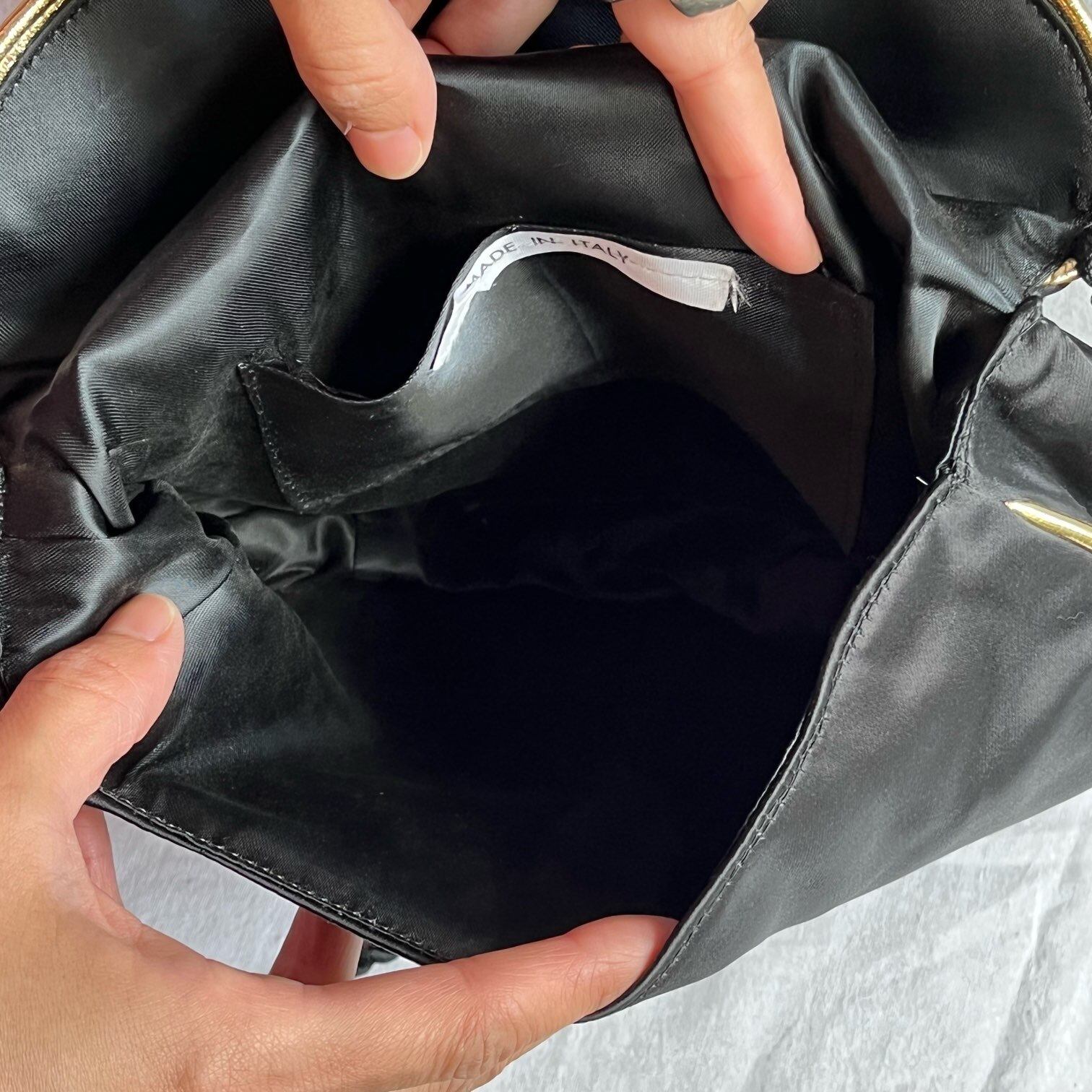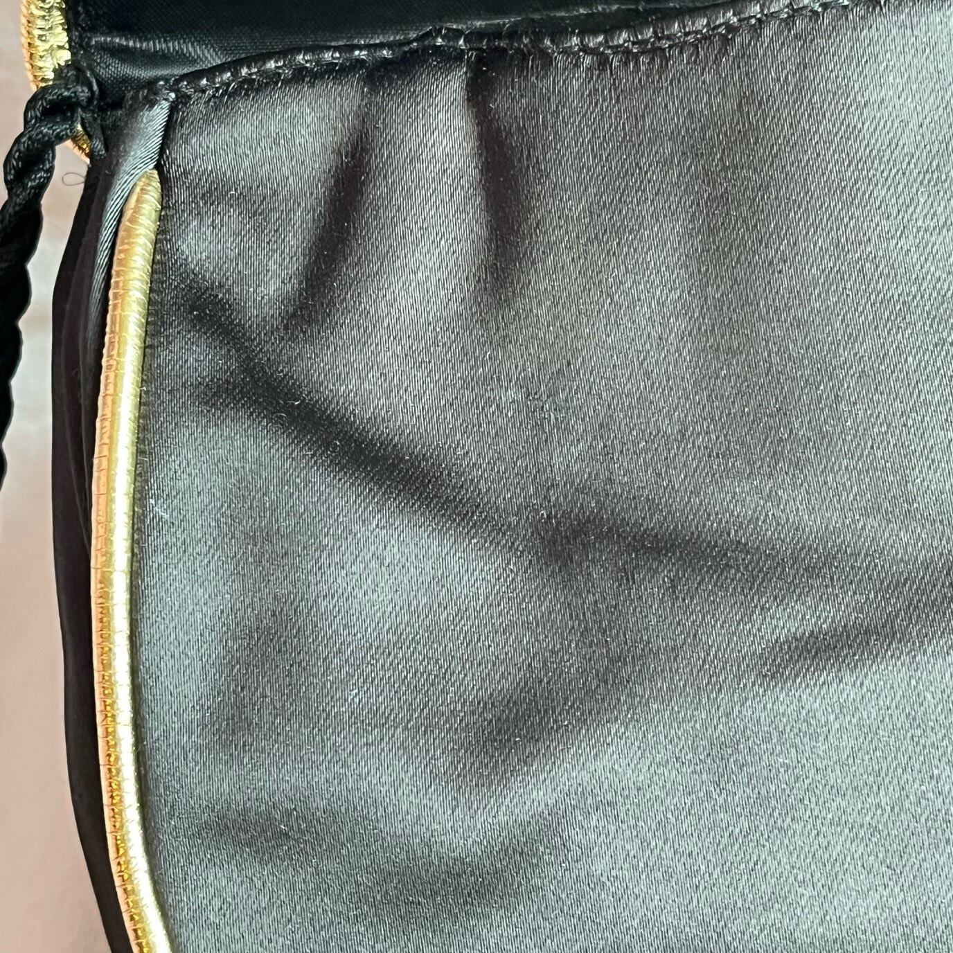 サテンのような艶感ある生地にゴールドの刺繍が映えるショルダーバック。