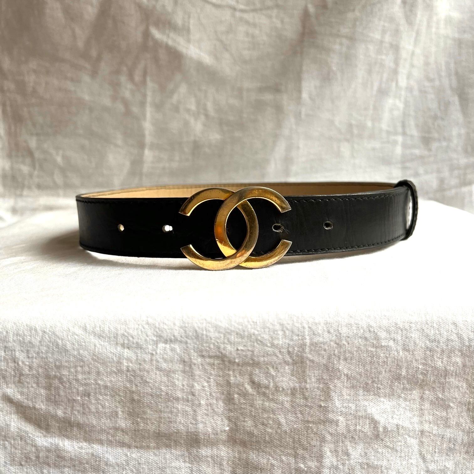 CHANEL 80’s Black Leather Coco Mark Belt