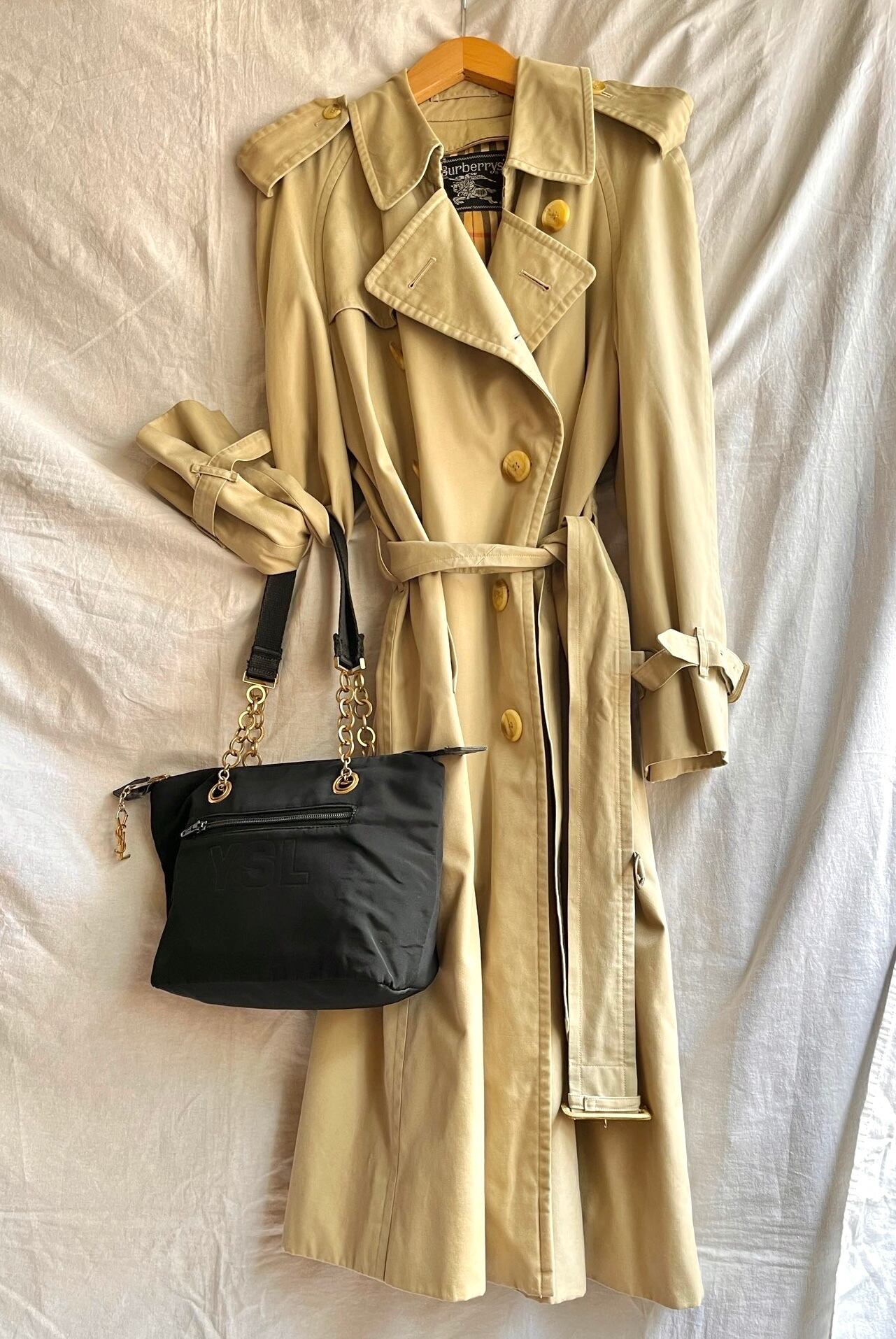 ナイロン地にゴールドチェーンがポイントとなったYSLショルダーバッグ、なんとリバーシブル!
