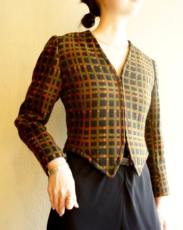 シックなマルチカラーのチェック柄のHERMESのツイードジャケット、80’s vintage!