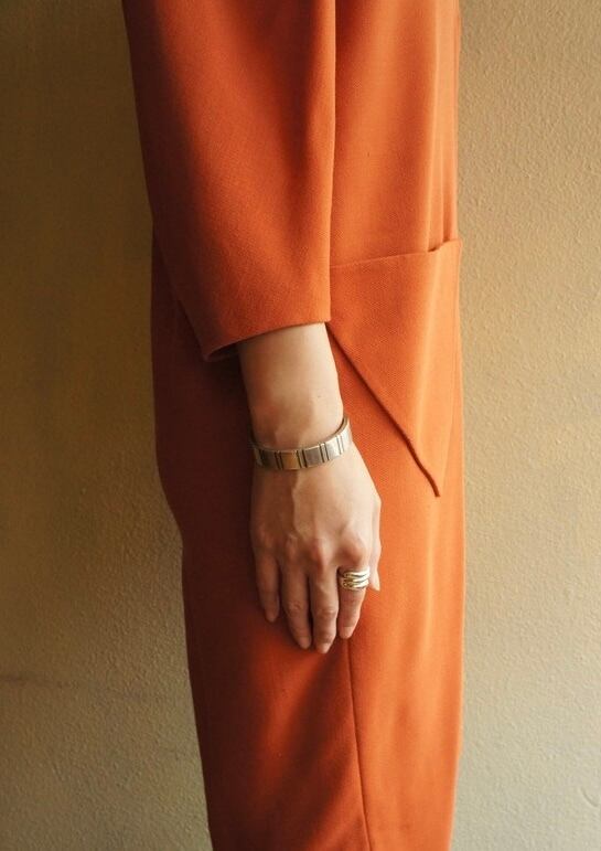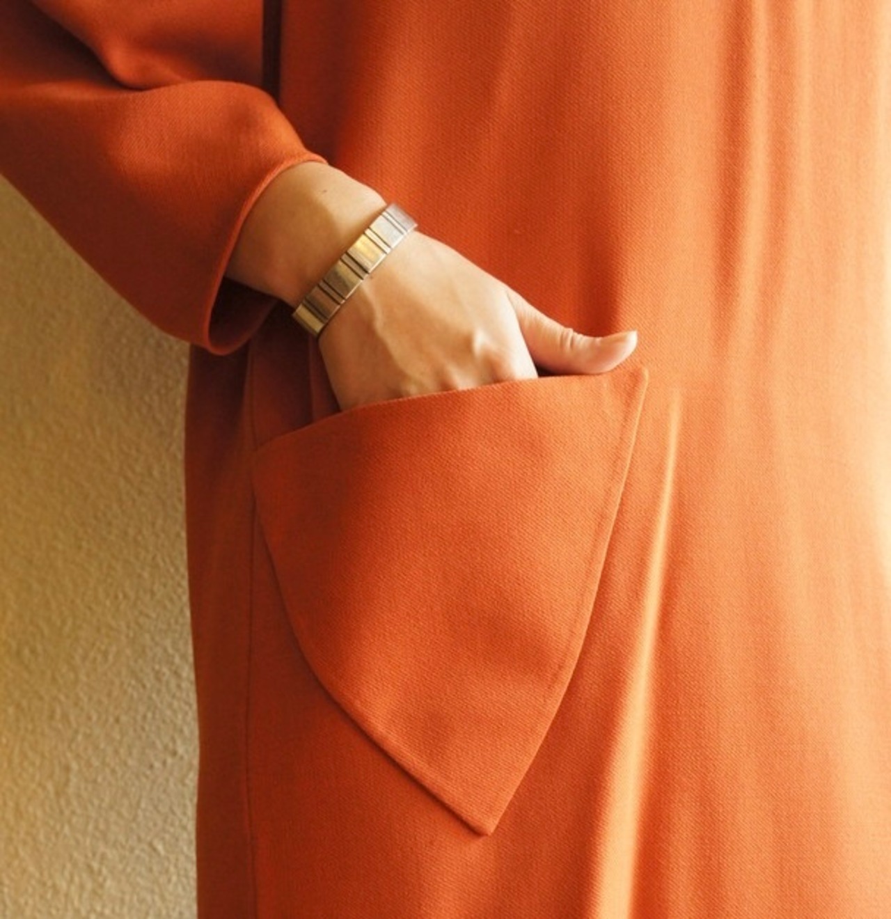 温かみのあるコーラルオレンジが印象的な1960~70’s Pierre Cardin のワンピース。