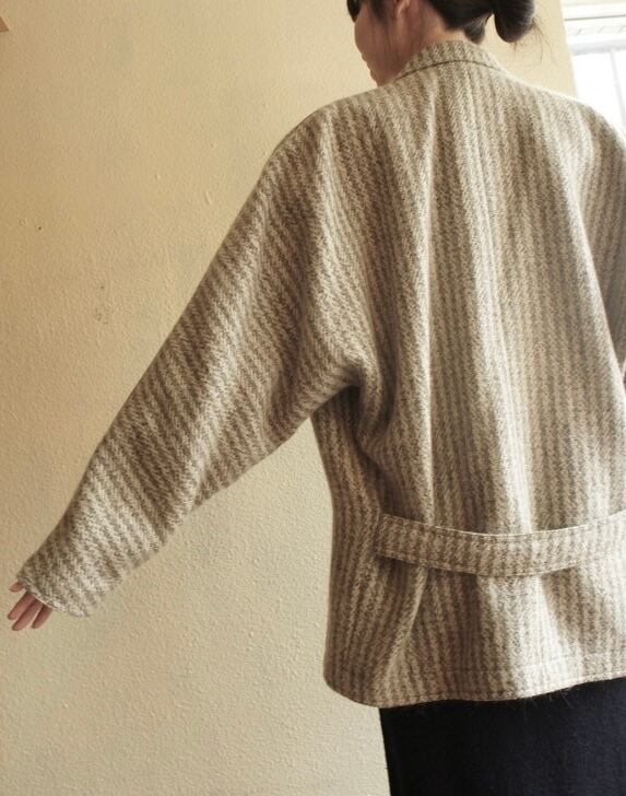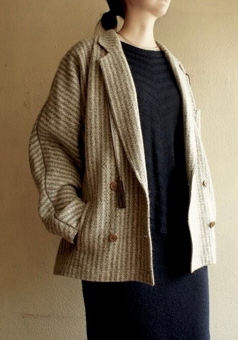 グレーのストライプとブラウンの色味が柔らかい印象の GUCCI 70-80's Wool Jacket、レア!