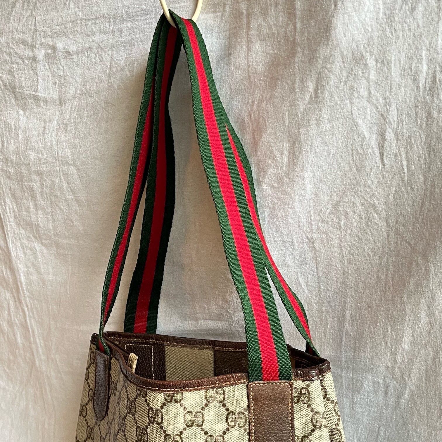 GGロゴPVCにシェリーラインのストラップがクラシックな GUCCI トートバッグ, 70’s vintage.