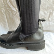 リブの効いた生地とモノトーンのラインがソックスのようなこだわりあるデザイン。レザーとのドッキングが遊び心のあるモード感満載な1足。。ヒールも低めで歩きやすくコーディネートのポイントに☆