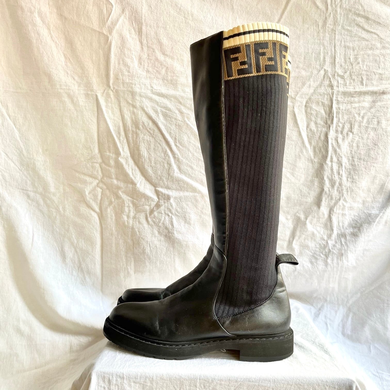 ズッカ柄がキュートなポイントとなったレザーストレッチ素材のレアなFENDIロングブーツ。
