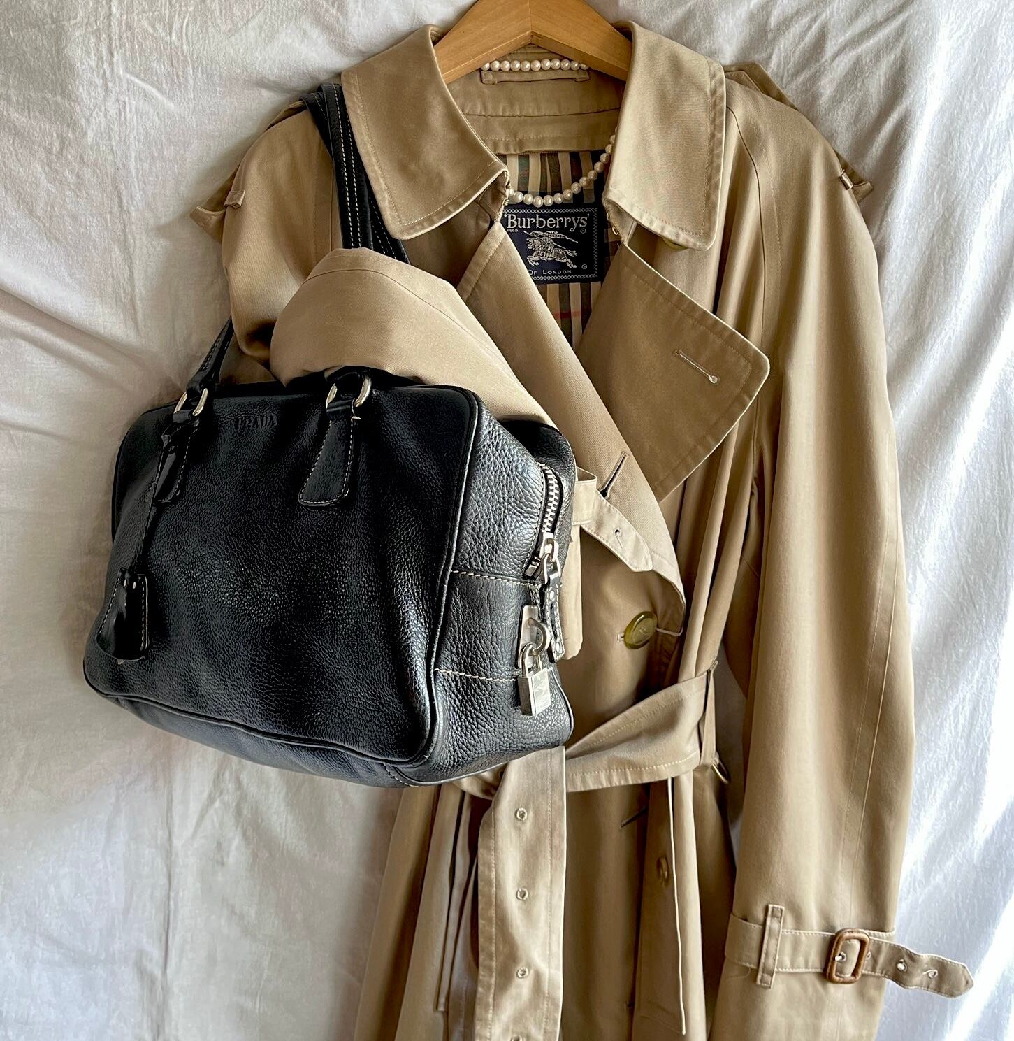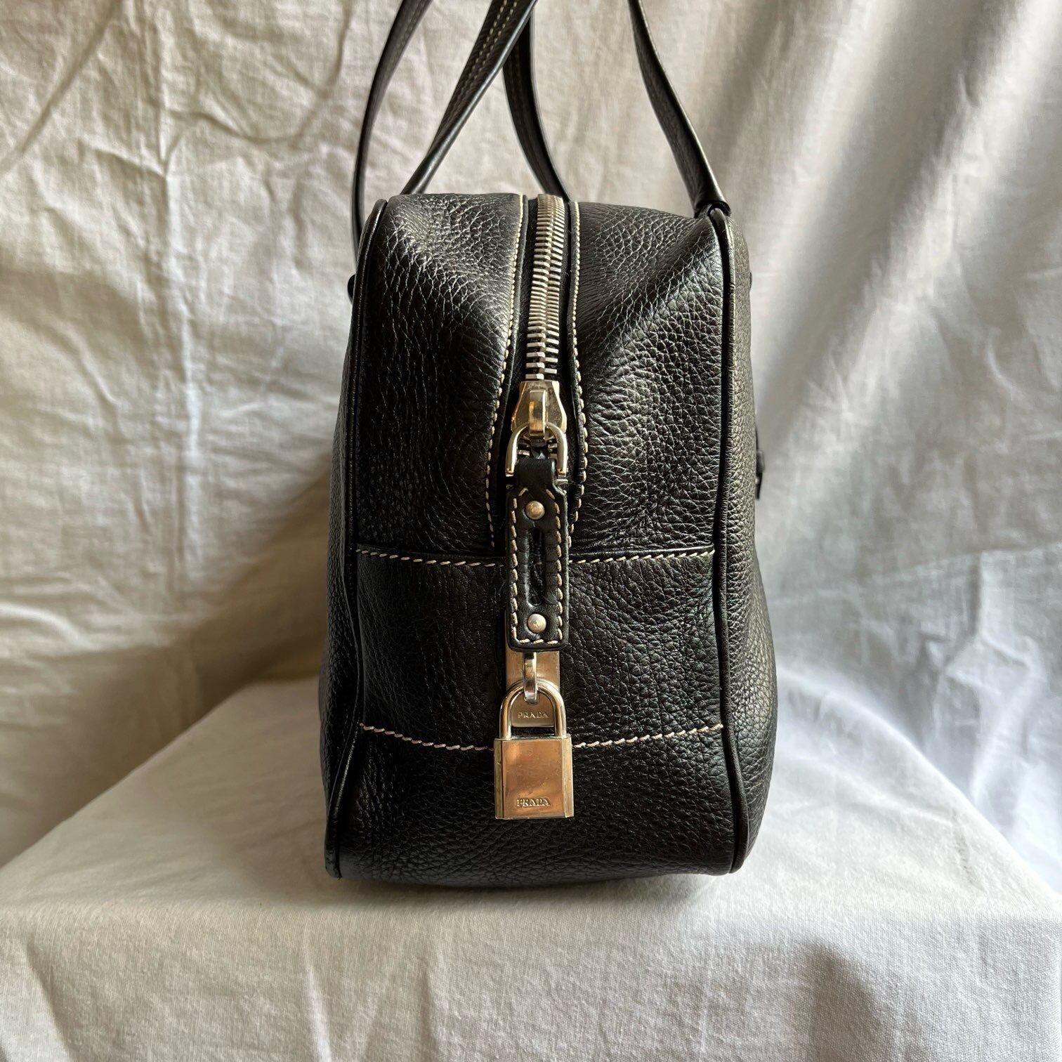 しなやかで上質なレザーがさすがPRADAのクオリティのボストンショルダーバッグ。Blackレザーにホワイトステッチがクラシカルで高級感あるデザイン。ネームタグや鍵がスポーティさを増して、PRADAの控えめなロゴがとてもスタイリッシュ。マチがあり大容量で利便性もGoodな1点。