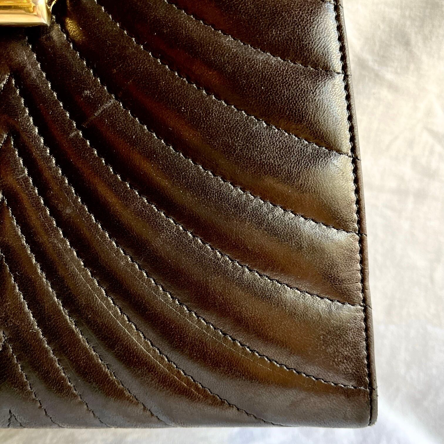 ブラックレザーにキルトの曲線のステッチが美しいFrance80~90’s ハンドバッグ☆