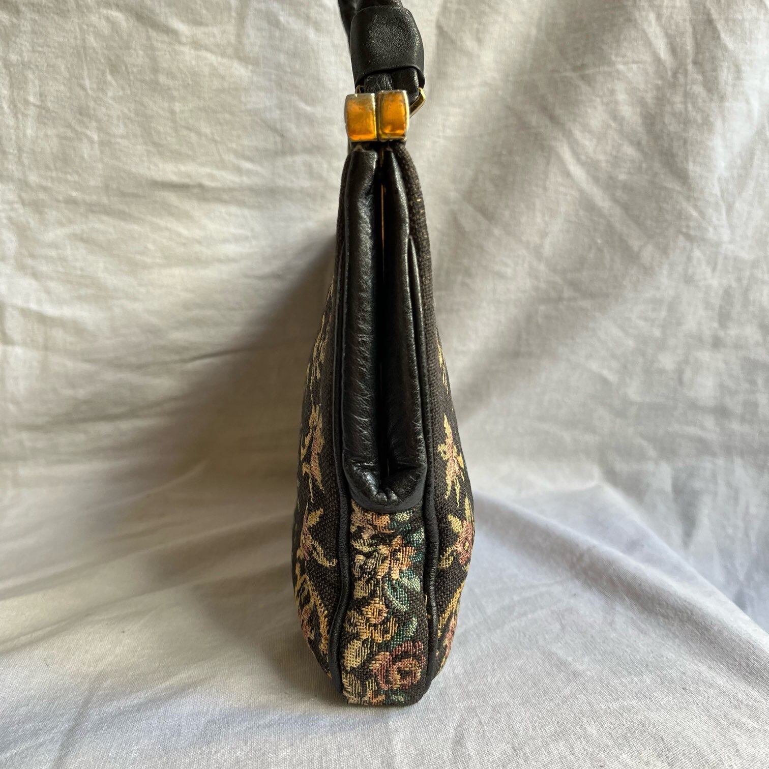 ブラックベースに繊細なゴブラン織りのお花が映える1950‘s~1960’s England Hand Bag☆