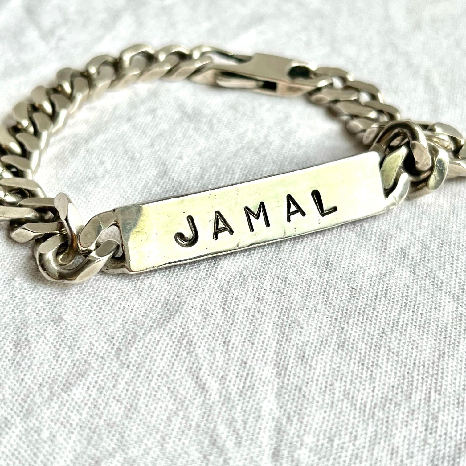 艶のあるシルバーにIDプレートがスタイリッシュなFrance シルバー925ブレスレット。