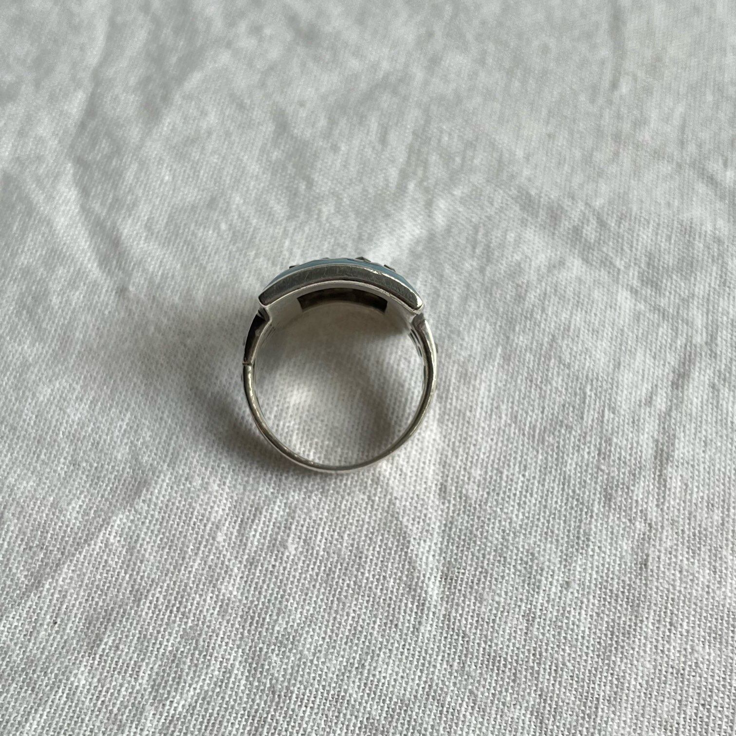 シルバーにターコイズカラーがインパクトのあるvintage Ring, silver925☆