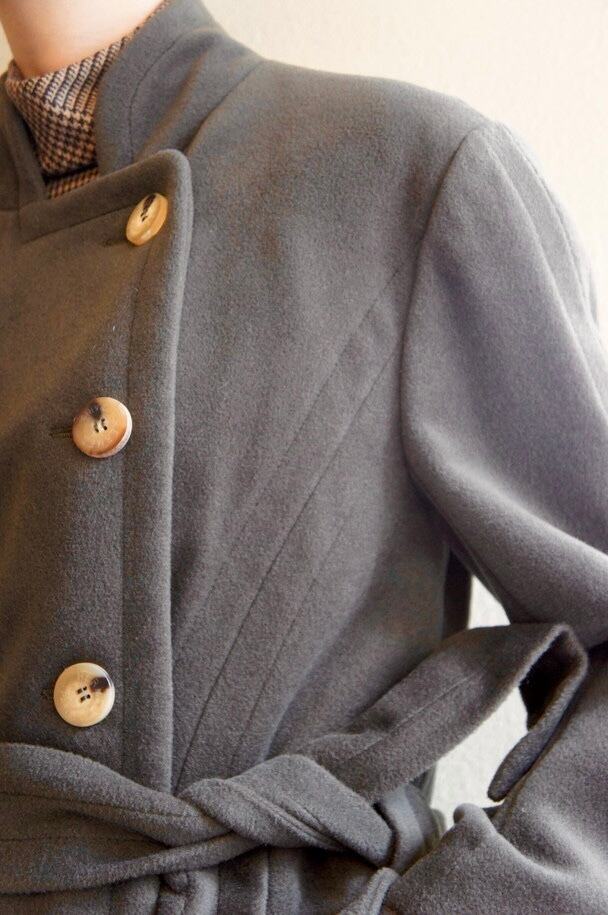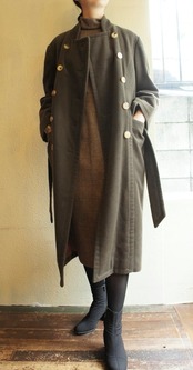 艶のあるカーキグレーウールが高級感漂うHERMES80’s コート。
