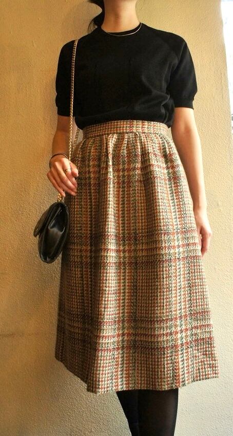 オレンジやグリーンを中心に様々なカラーで織り成すChanelの独自の高級ツイード:リントン社によるファンシーツイードのフレアスカート。