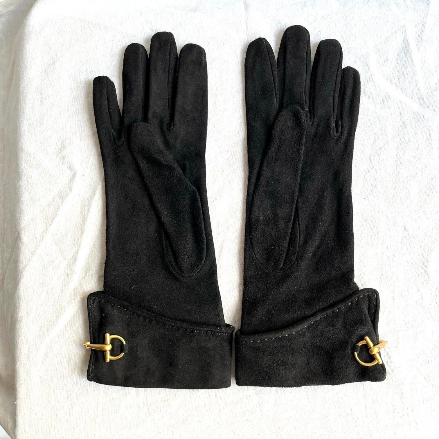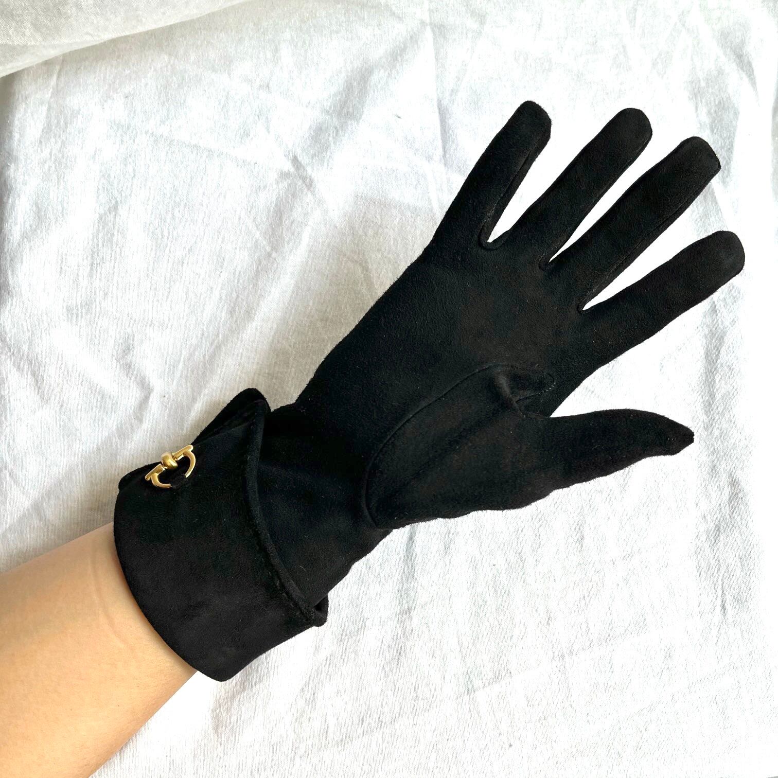 しっとりとなめらかなスエードがシックな GUCCIグローブ。サイドについたゴールドのビットが、着用時にとても気品がでる デザイン。