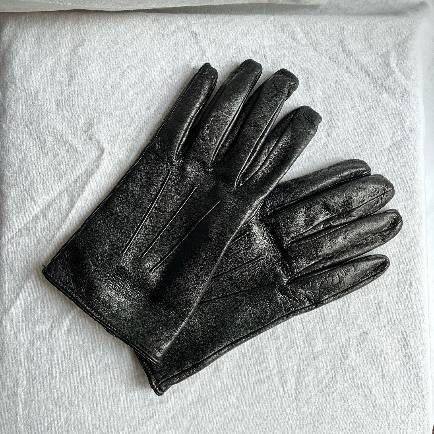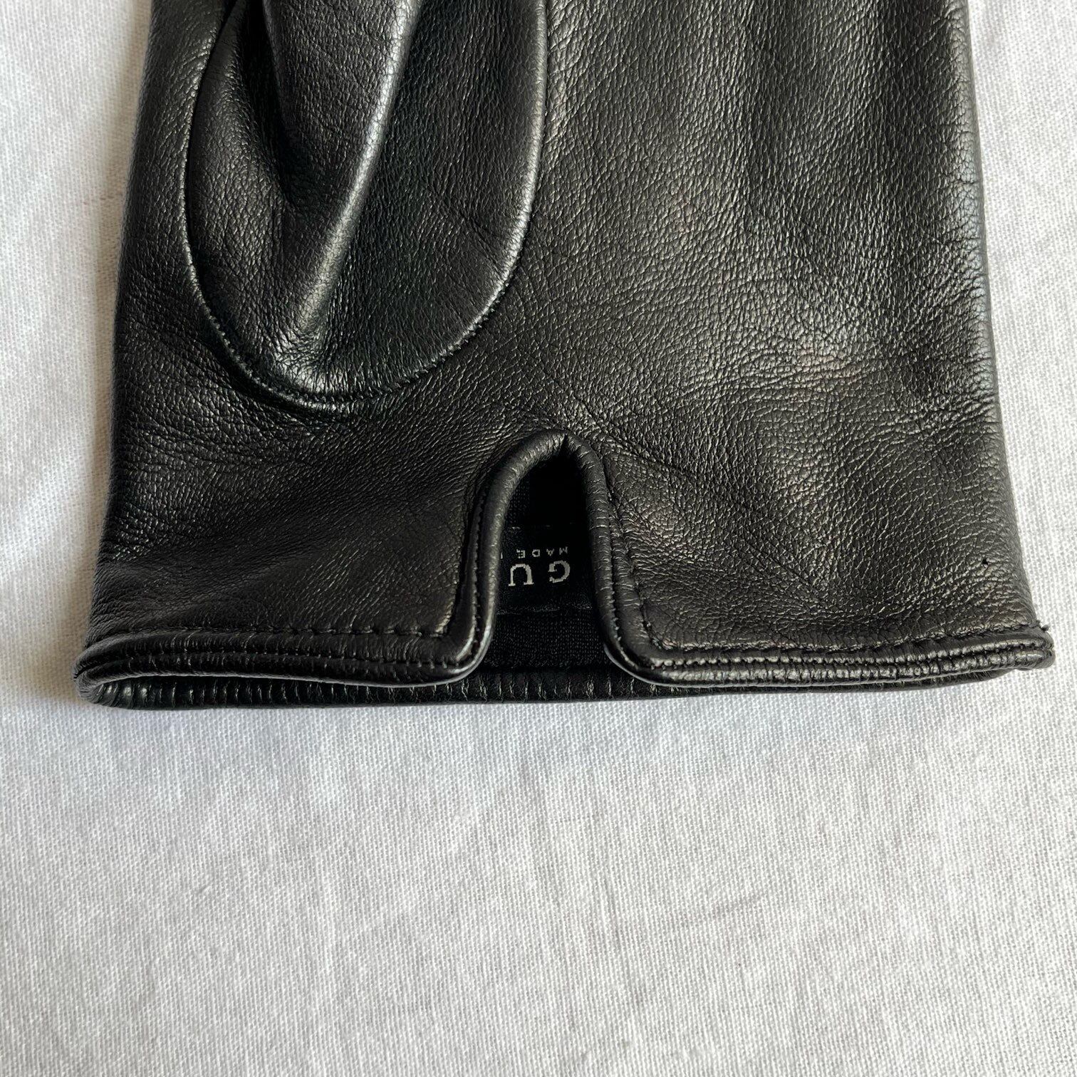 艶のあるやわらかい上質ブラックレザーの GUCCIのグローブ、メンズ。