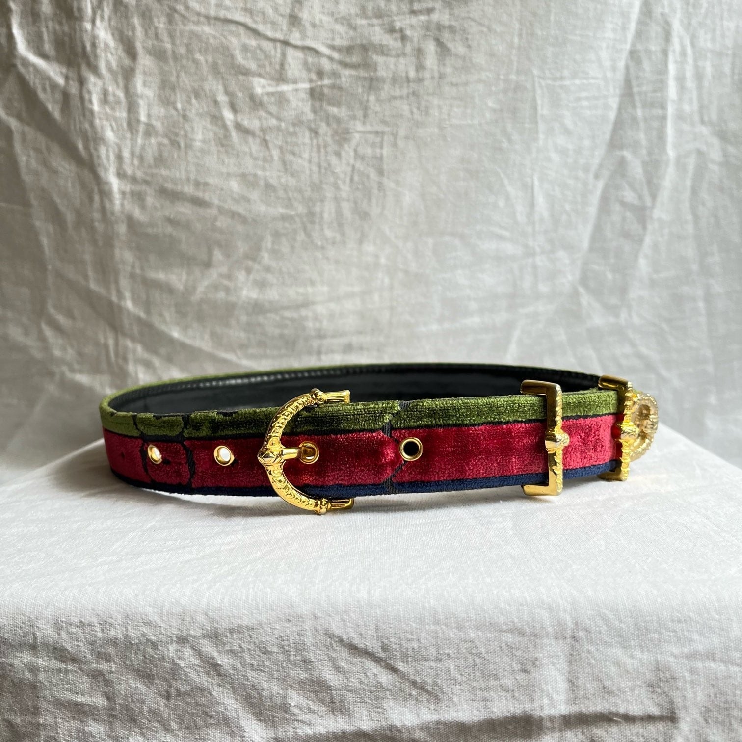 肉厚ベロアにゴールドのバックルが上品でcuteなRoberta 80’s vintage Velour Belt。レッドを基調にネイビー×グリーンのRobertaらしいカラーで、存在感がありコーデのポイントになる1点です!
