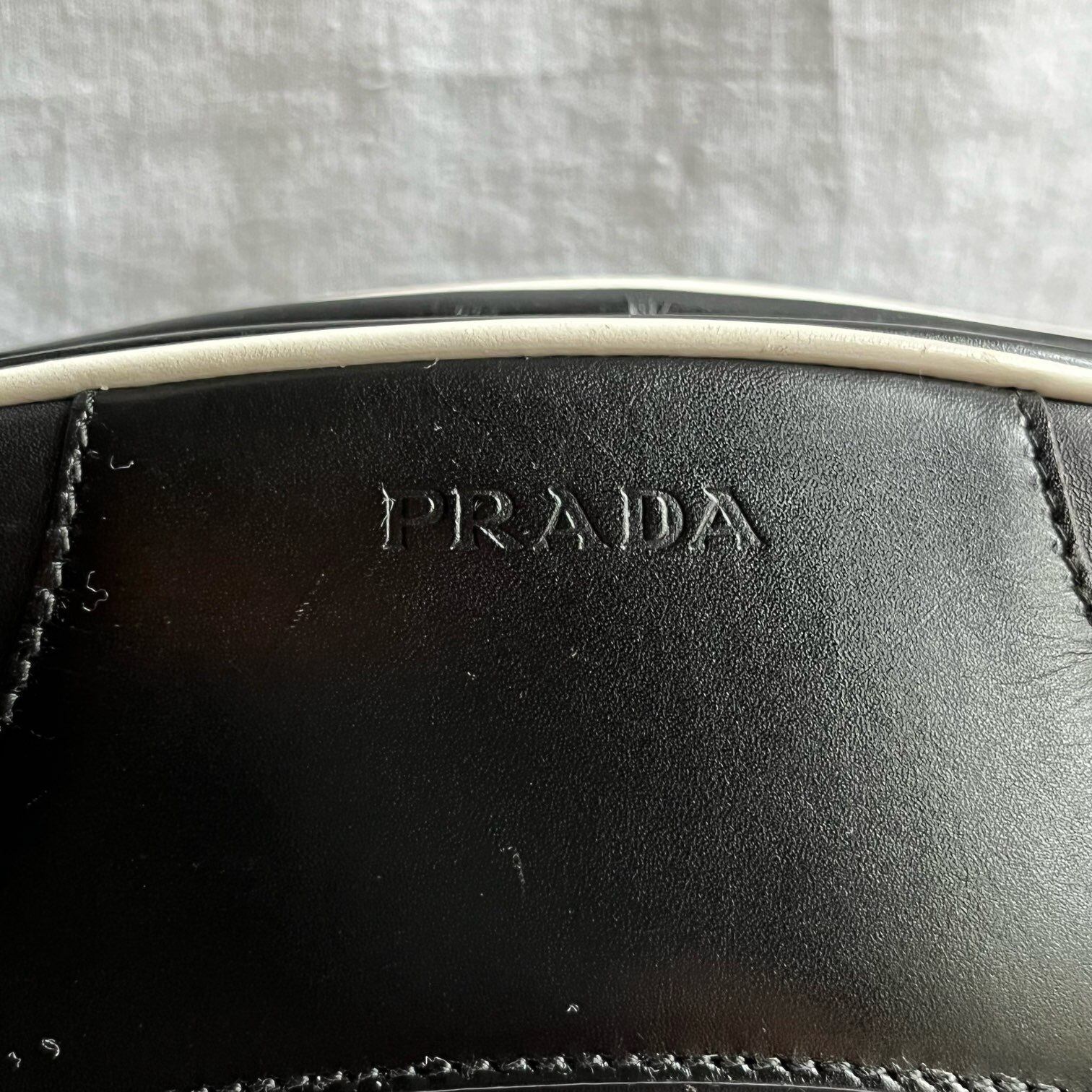 つやのあるブラックレザーにパイピングが効いたスポーティなPRADAレザーボストンバッグ☆