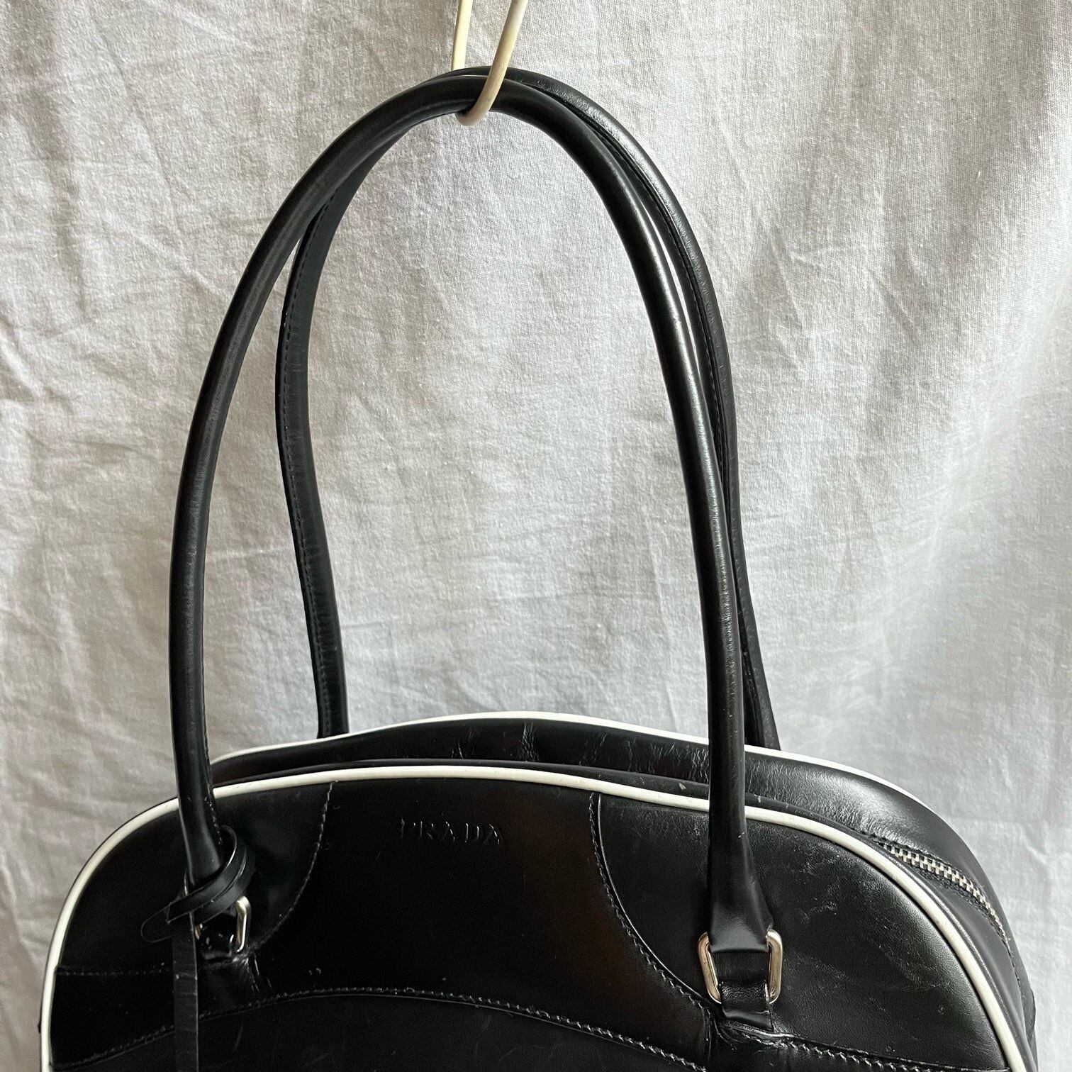 PRADA Black × White Piping Leather Boston Bag