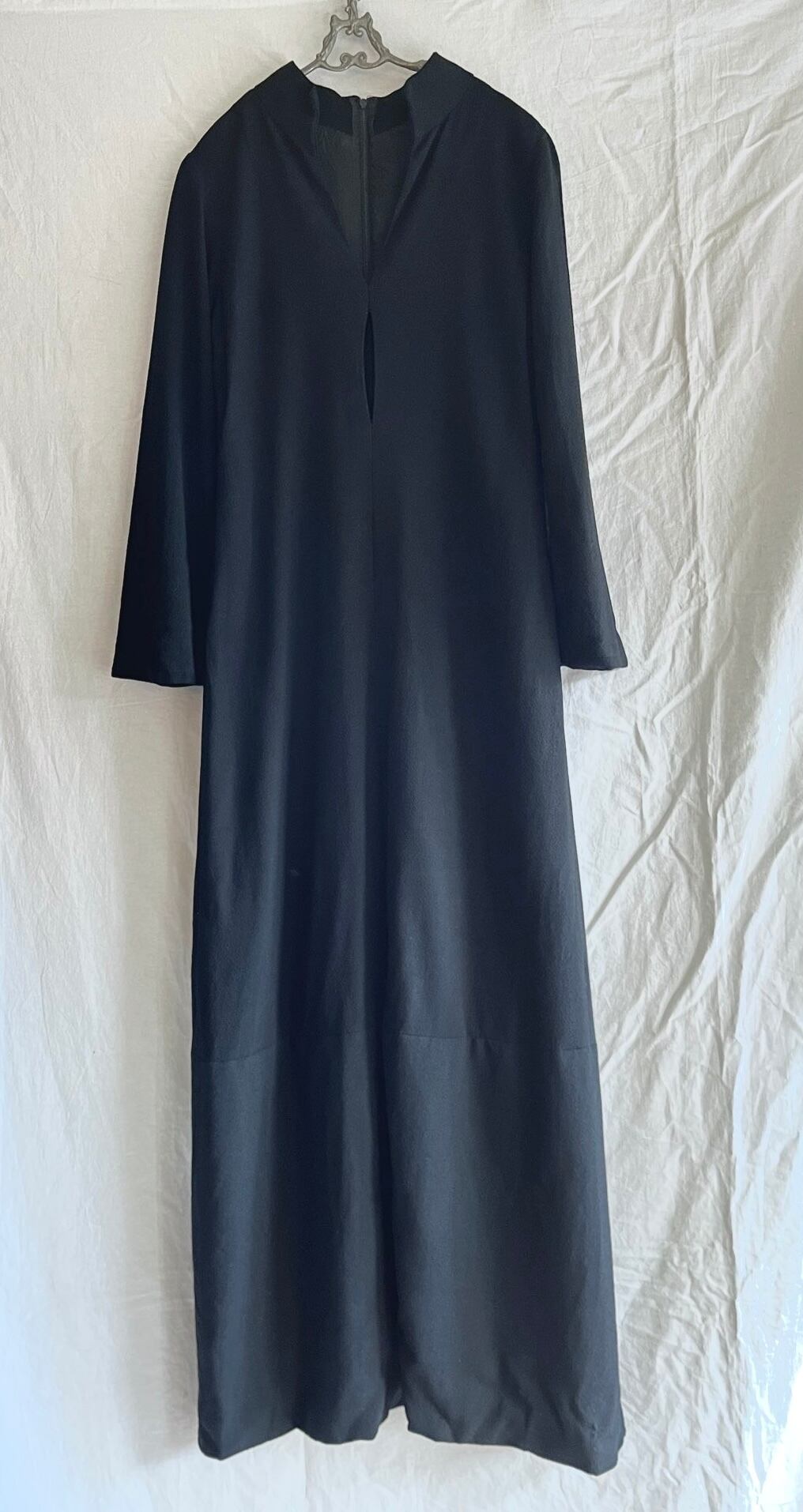 France 1960’s Hand Made Black Front Slit Long Sleeve Dress