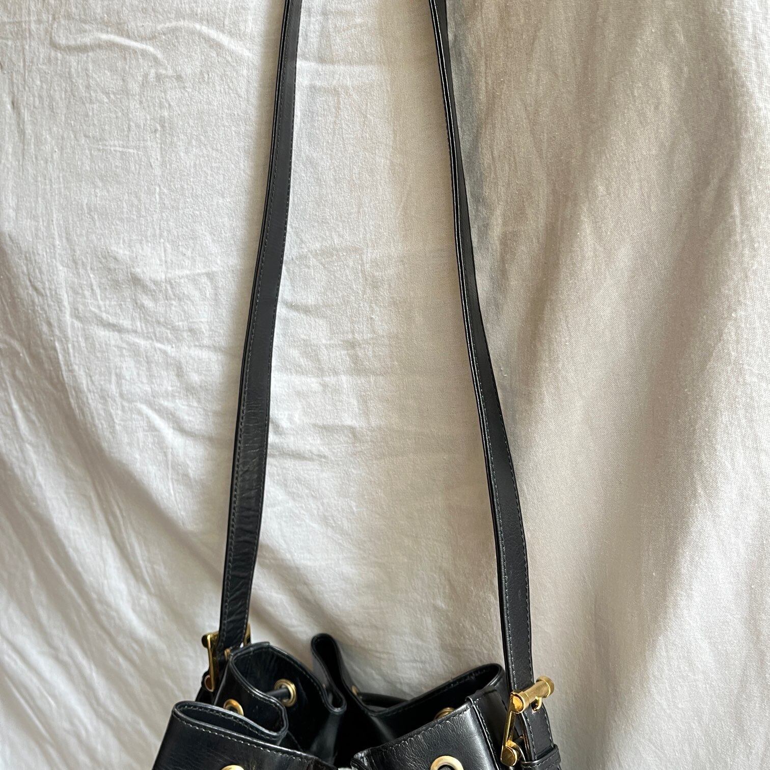 なめらかで上質なレザーにスマートな巾着型のフォルムが美しい!たっぷり入り中も見やすく使いやすい。ストラップの金具やサイドのバックルまでTiffanyらしく細部までこだわられたデザインです。