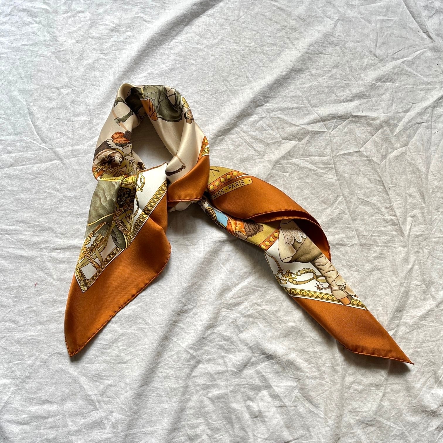HERMES “Presentation Dechevavx” Print Brown Scarf with box — Deadstock! —
