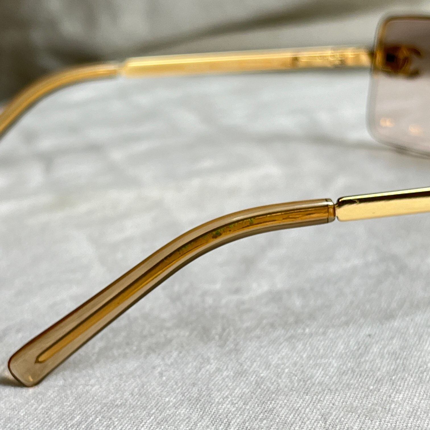 CHANEL “COCO” Square Frameless Gold×Pink Glass Sunglasses