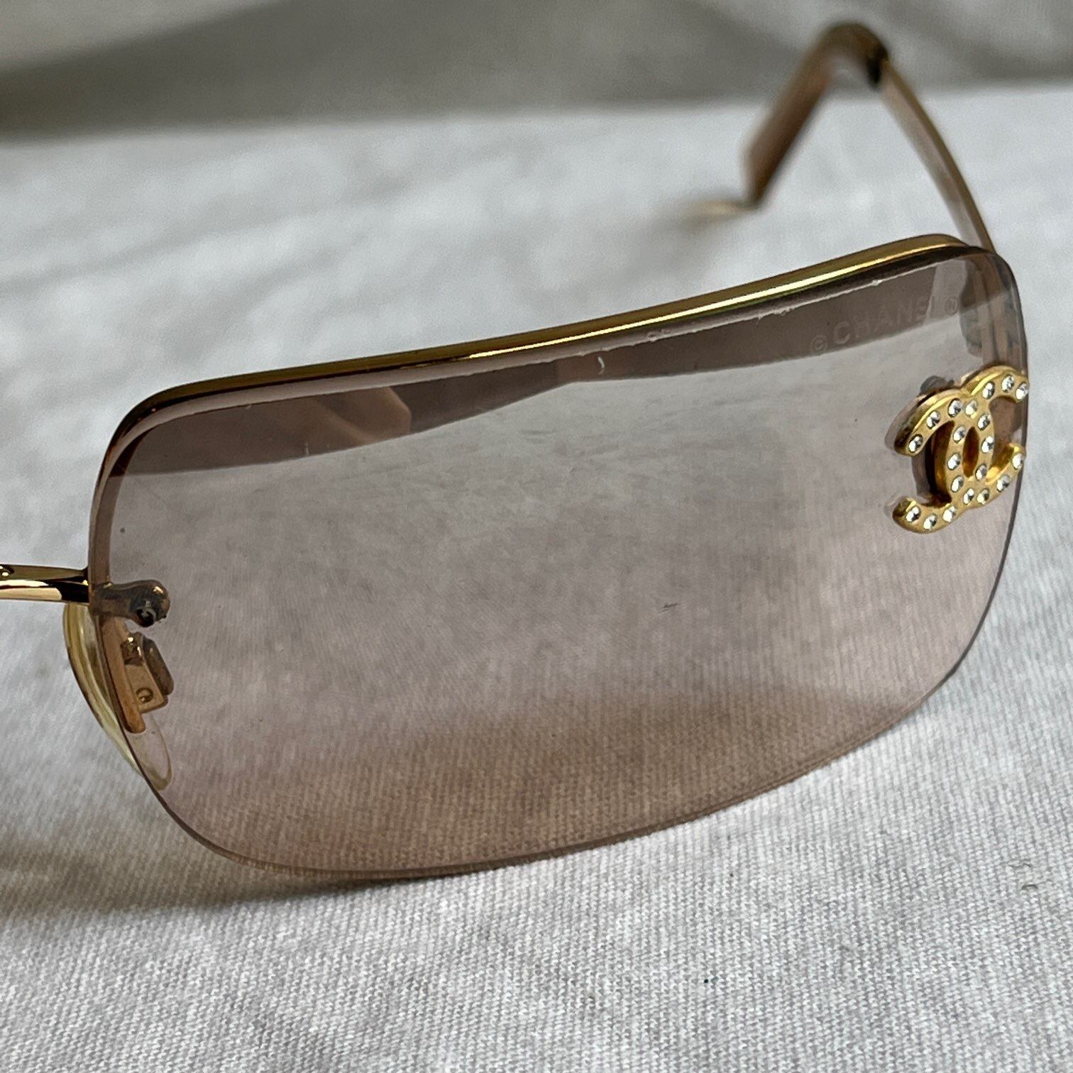 フレームレスのスクエアレンズにラインストーンココマークが高級感のあるCHANELのサングラス。