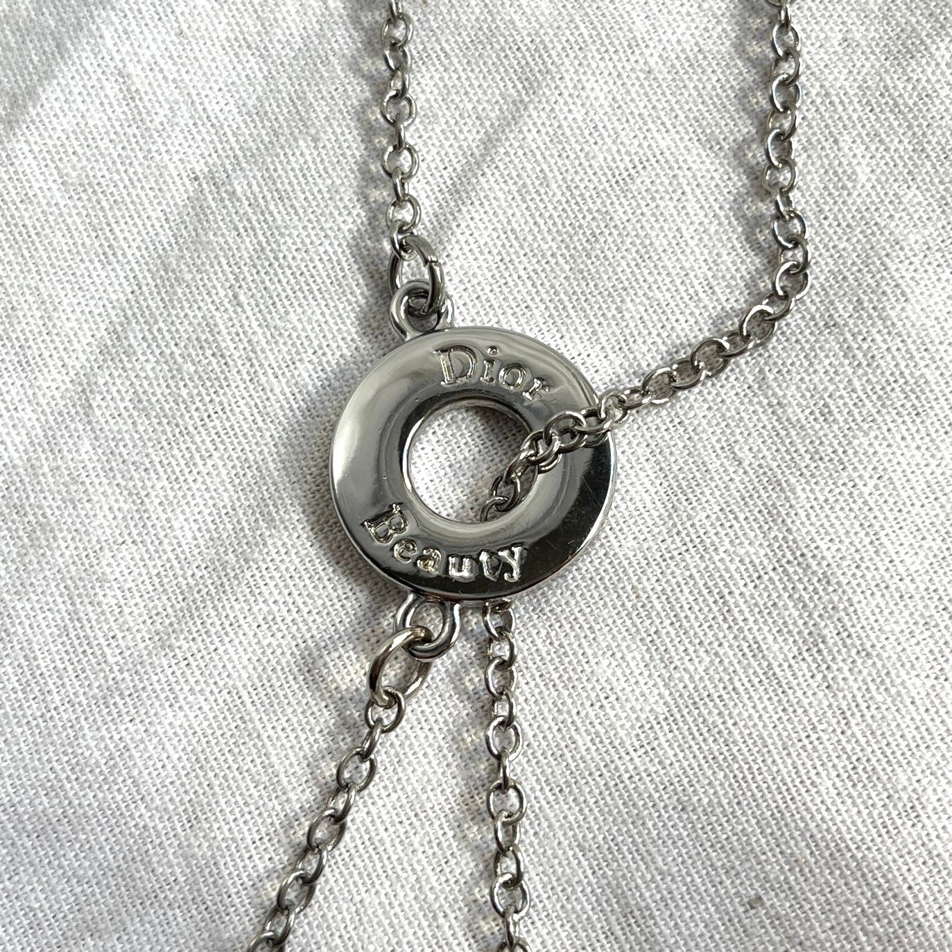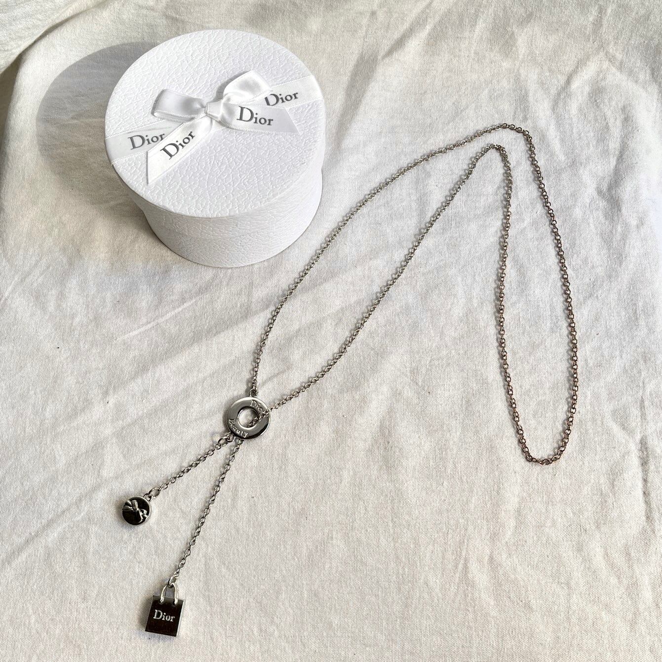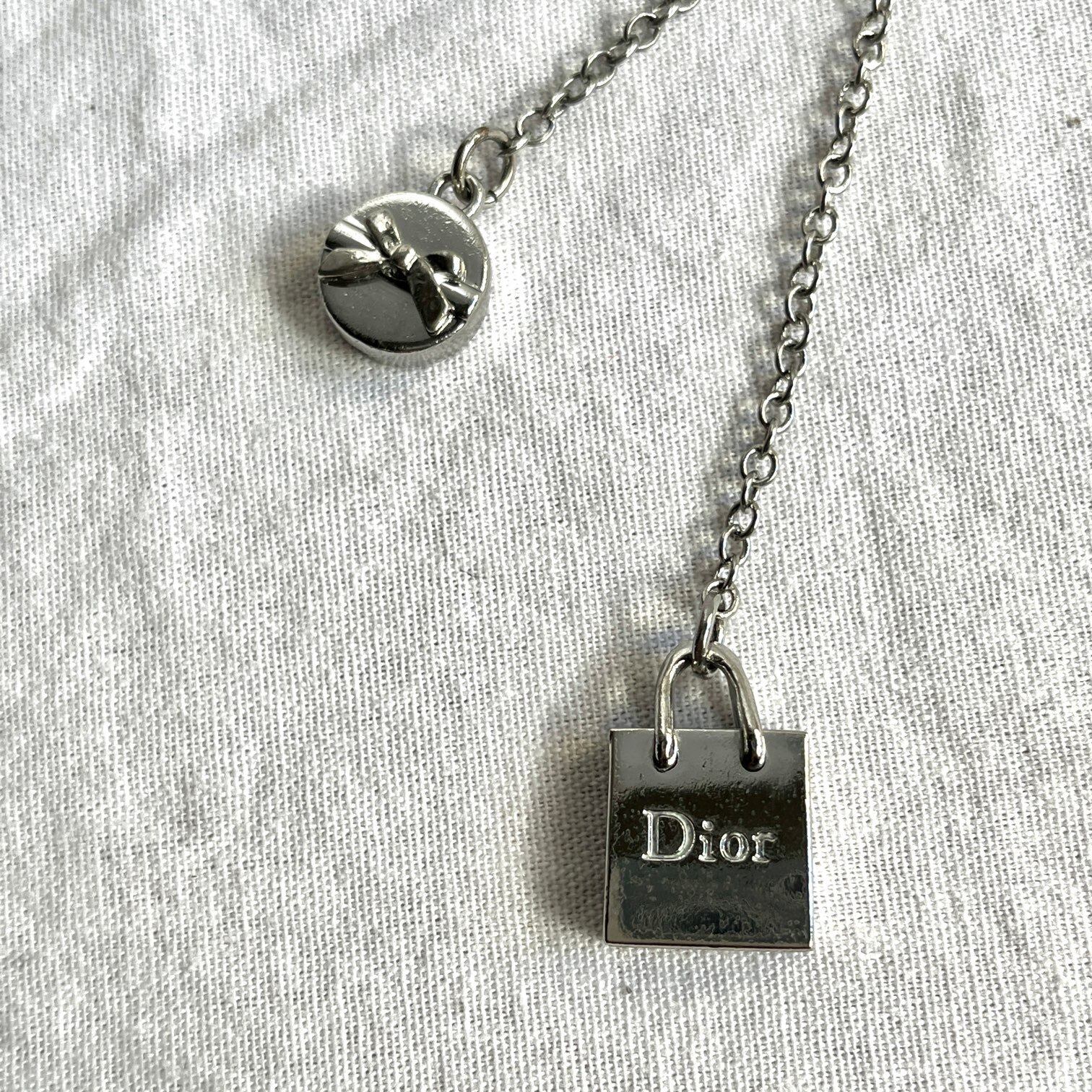 Diorのショッピングバッグとプレゼントのチャームがキュートなラリアットネックレス, こちらはDior beautyのノベルティ。