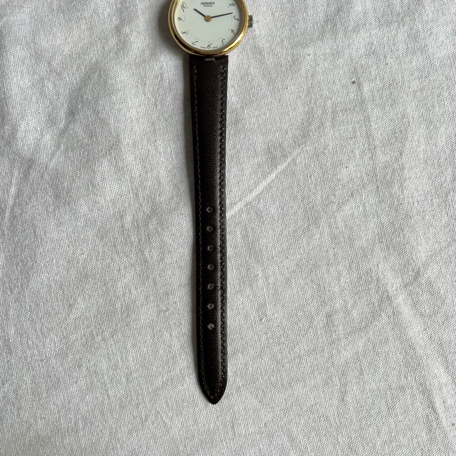 「1978年にエルメス初の腕時計として誕生したアルゾーフランス語で鎧(あぶみ)を意味するロングセラーモデル。」アシンメトリーなラグや流れるような動きのある文字盤がエルメスならではのシンプルながらも気品溢れる一品です。