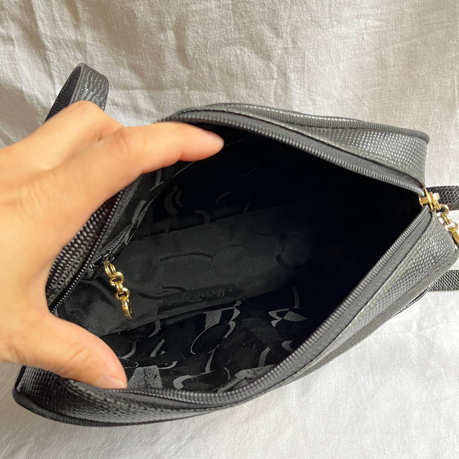 Ferragamo “Vara” Black Embossed Leather Shoulder Bag