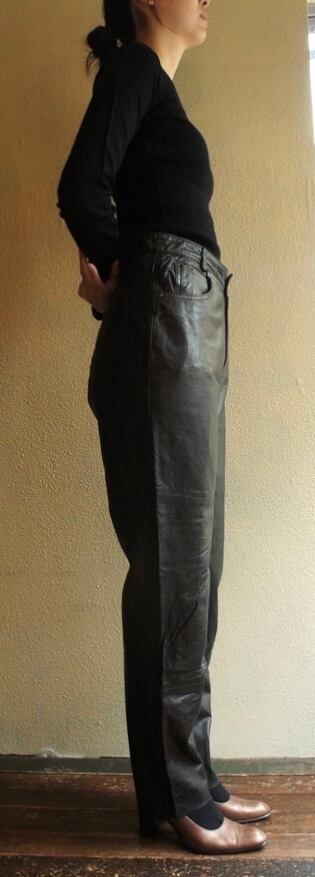 艶やかな質感でラムのソフトな印象も兼ね備えたブラックレザーパンツ☆切り替えのようなデザインがアクセントになっていてコーディネートが映える一本です♪テーパードシルエットでスタイル良くクールに履けるのでカジュアルにもキレイめにも合わせやすいです☆