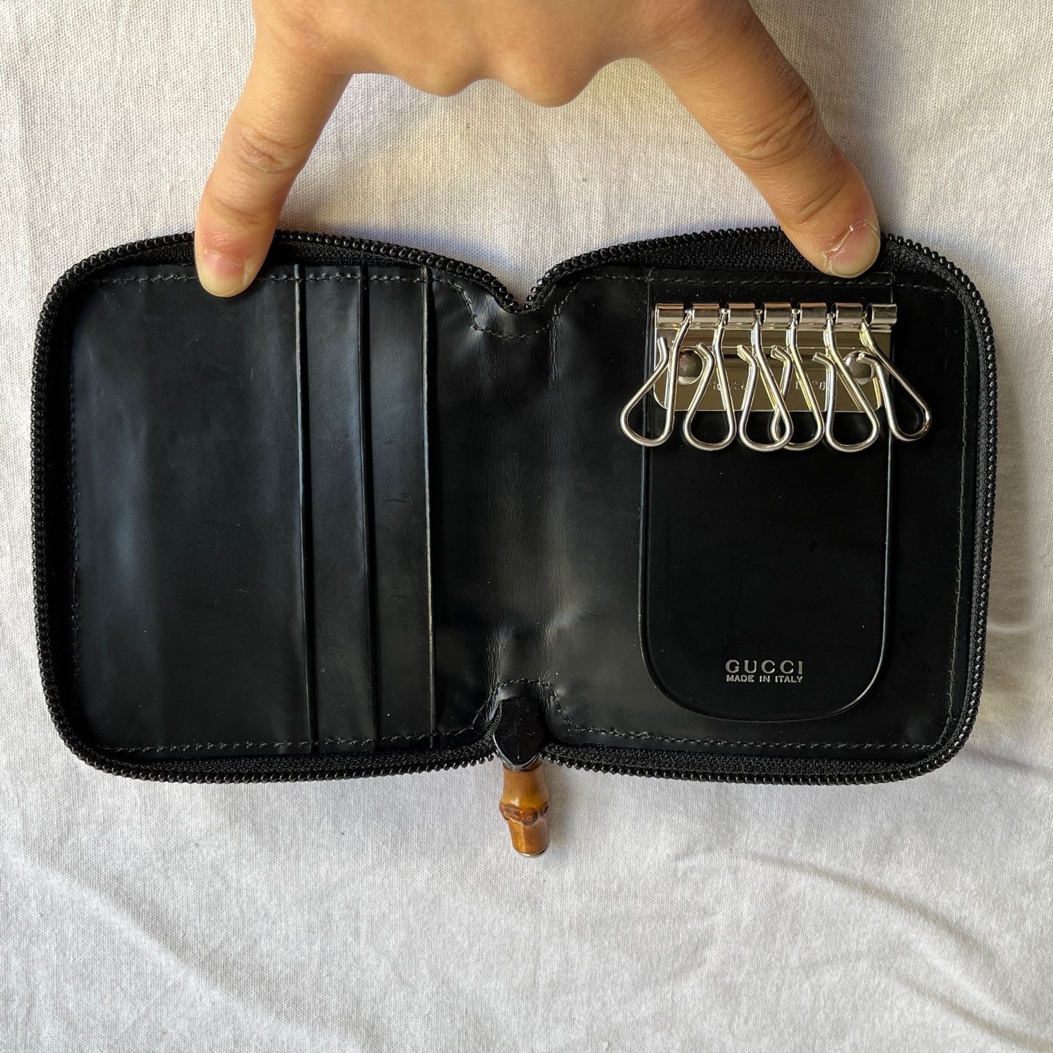ブラックのナイロンケースにバンブーのブラウンがCoolなGucciのカード&キーケース☆
