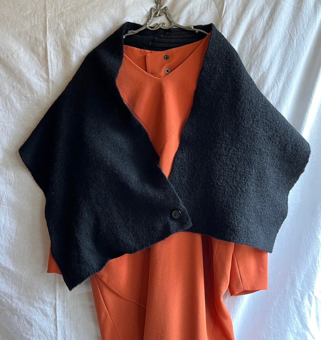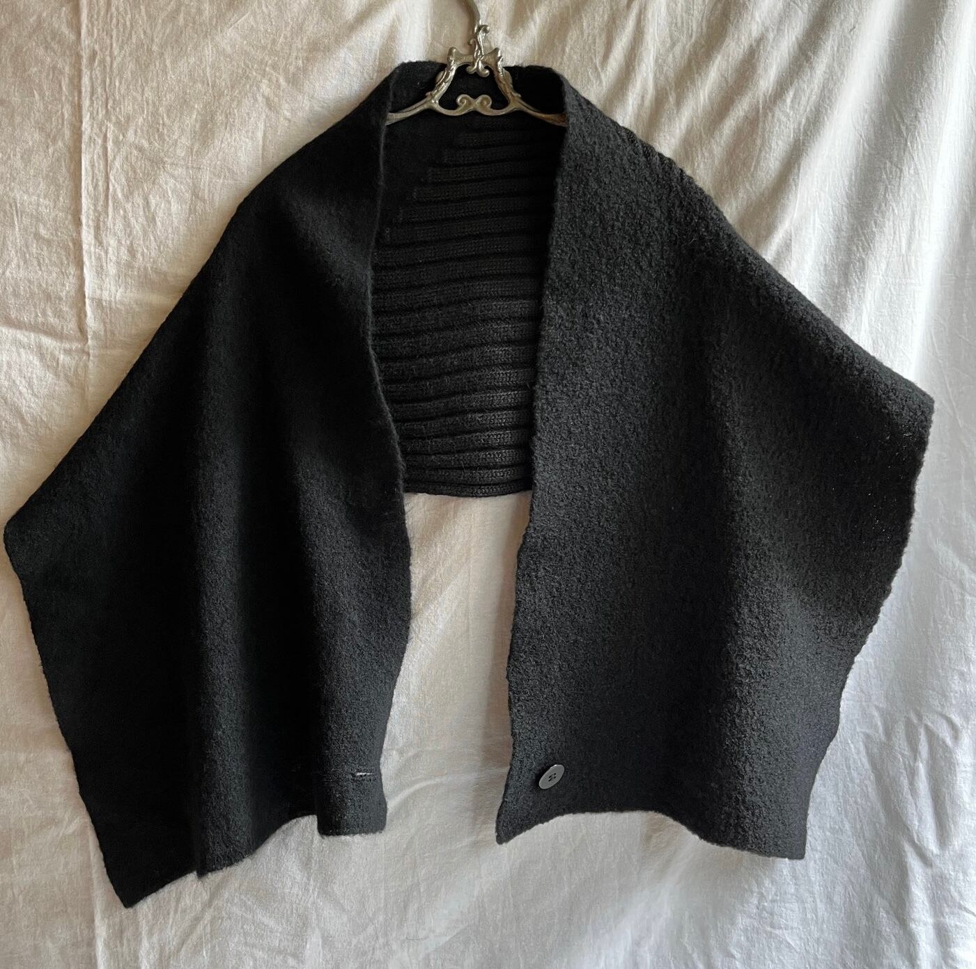 漆黒のブラックカラーにパターンがデザインされてとてもクールなYohji yamamoto, ケープにもなるマフラー‼︎