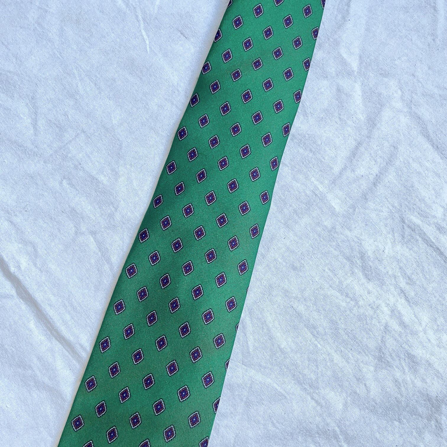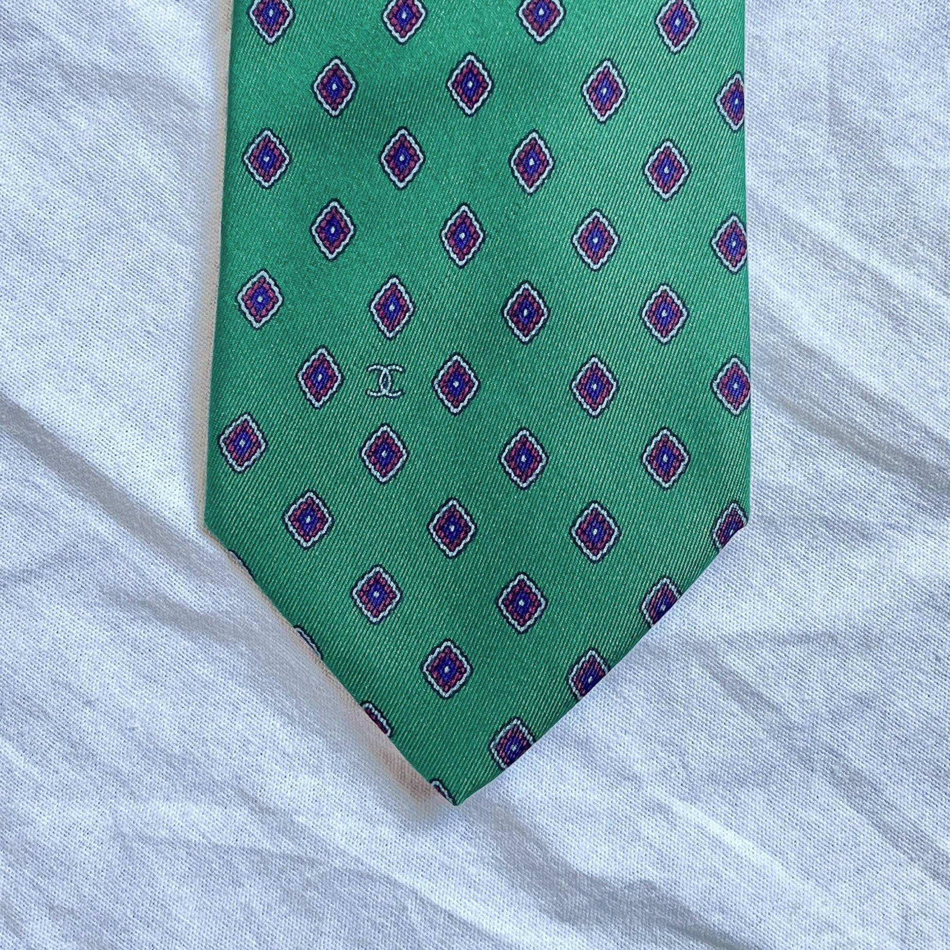 深みのあるグリーンに細やかなダイヤ柄がクラシカルなCHANELシルクネクタイ☆