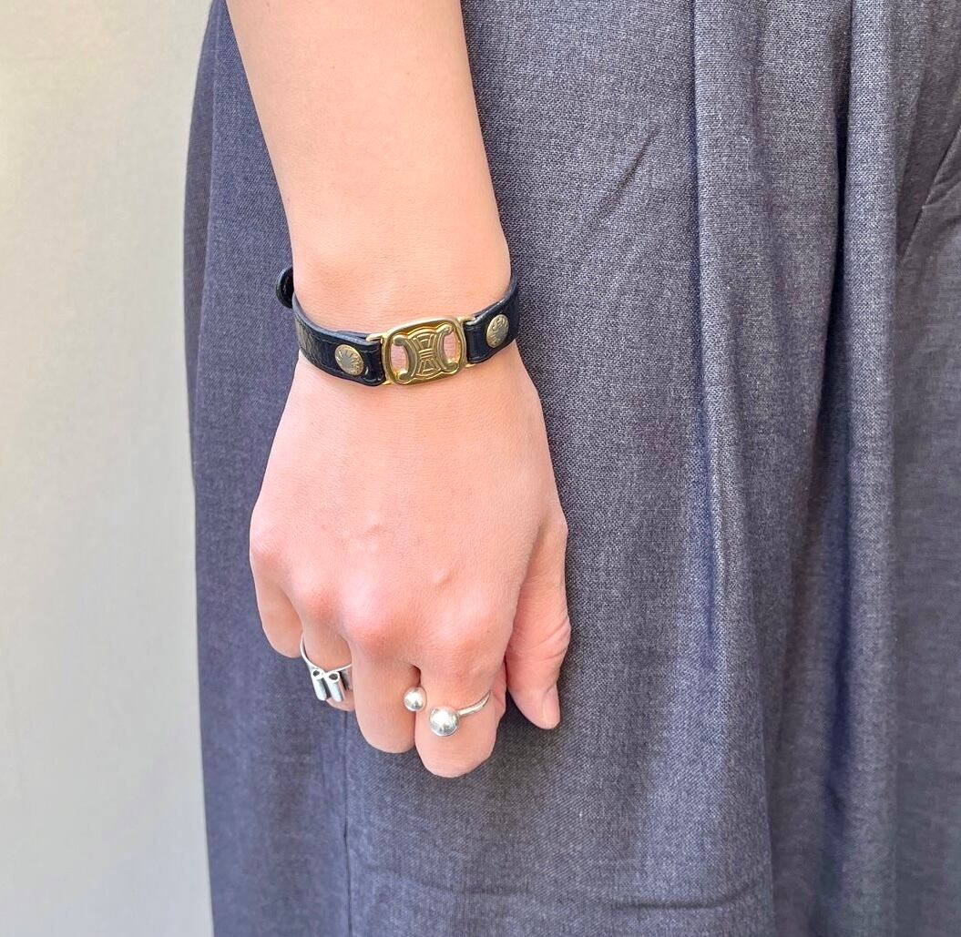 CELINE “Macadam” × Black Leather Bangle
