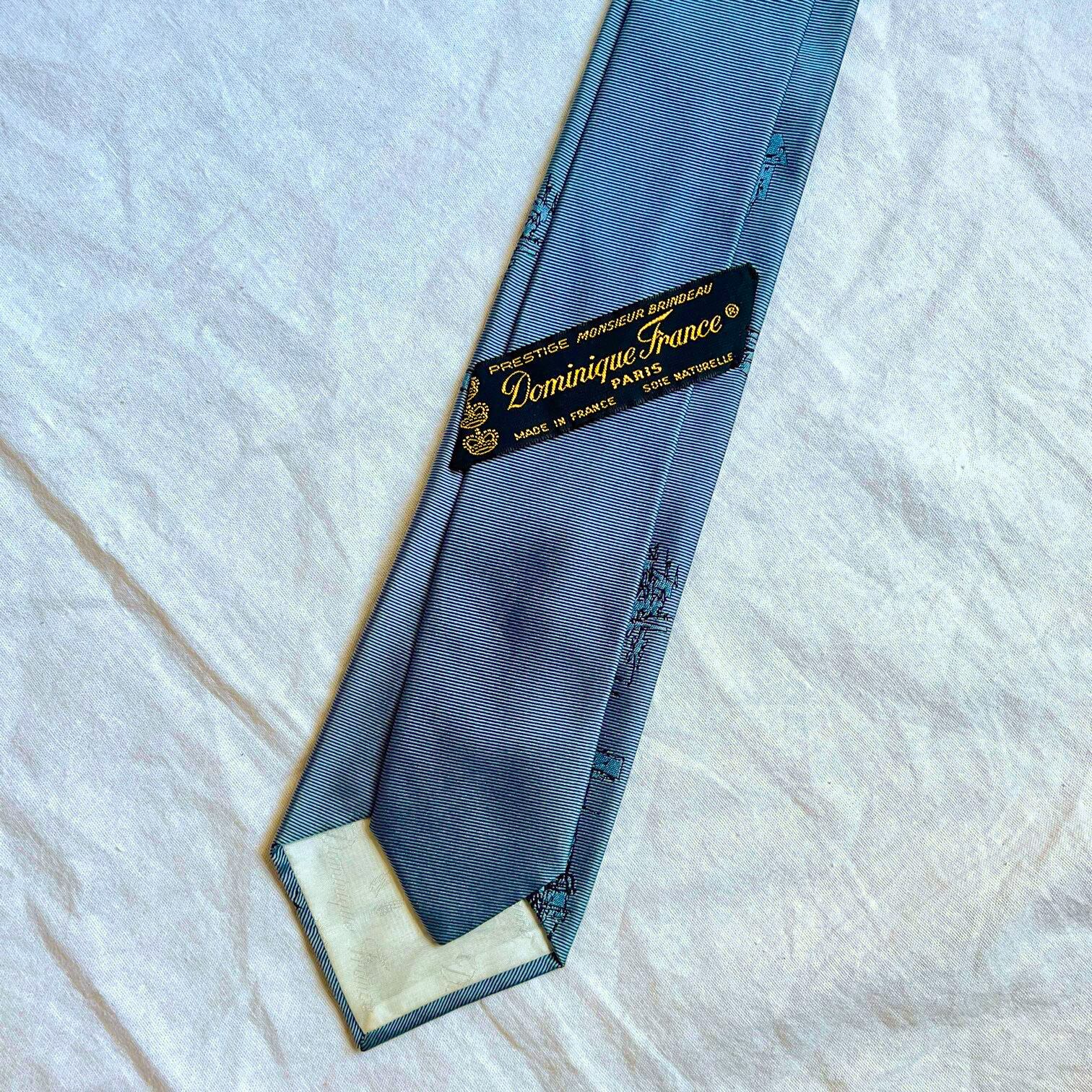 Dominique France “Croquis de Paris” Blue Grey Silk Tie-deadstock -