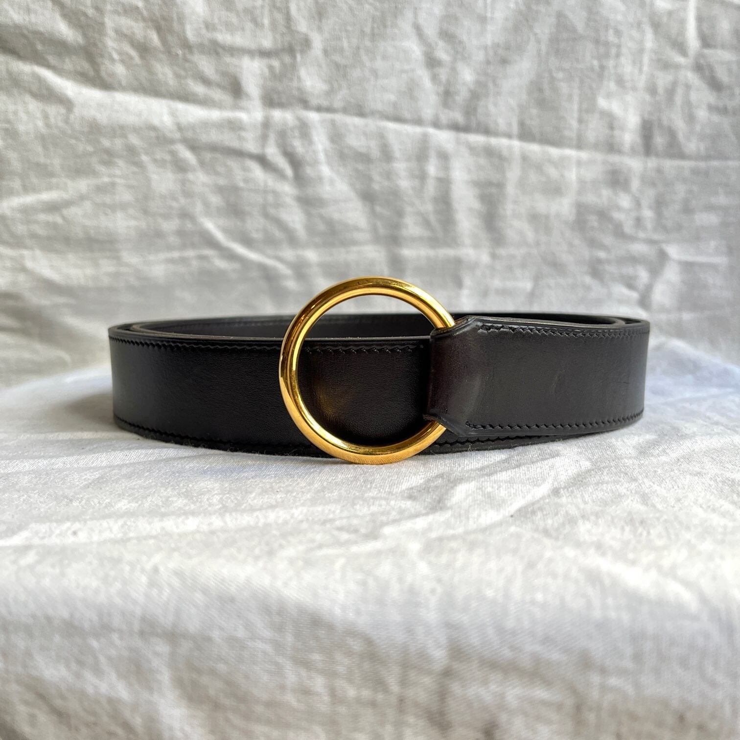 ブラックレザーにゴールドのシングルリングが映えるHermesベルト, 2004年製。