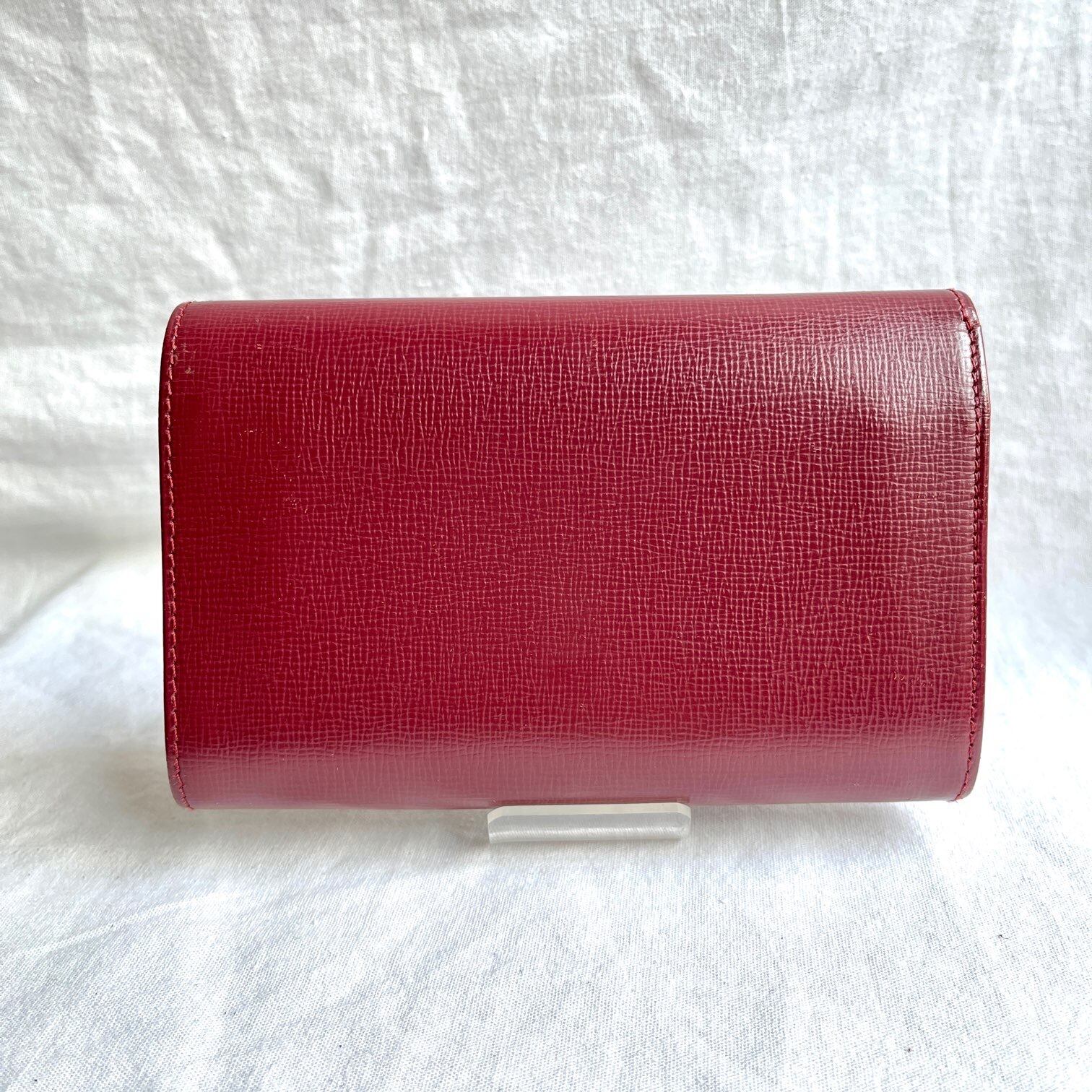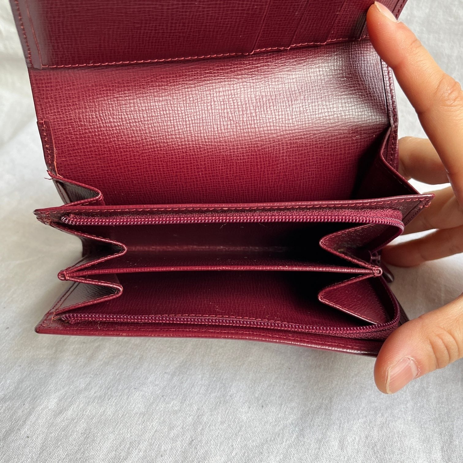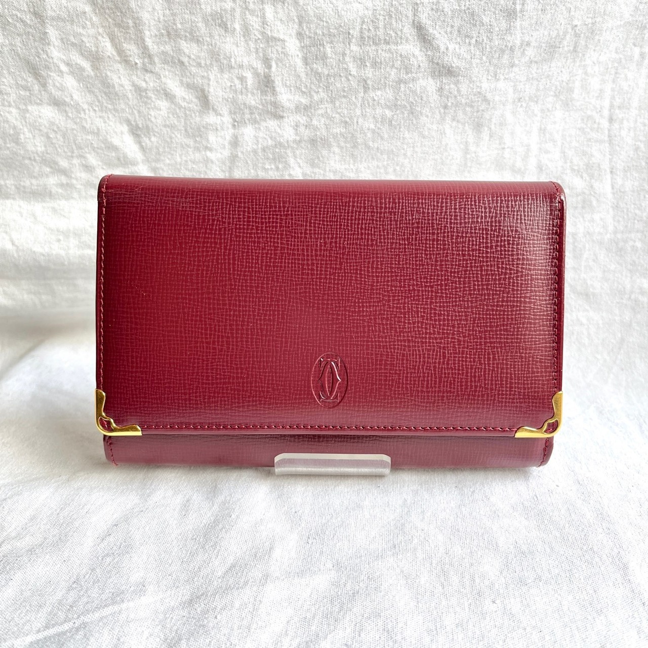 上品でしっとりとしたボルドーレザーがカルティエらしい折りたたみ財布。さりげないエンボスロゴにゴールドメタルが映える高級感あるデザイン。カードや小銭、お札も容量がしっかりと入る機能性の高い1点。