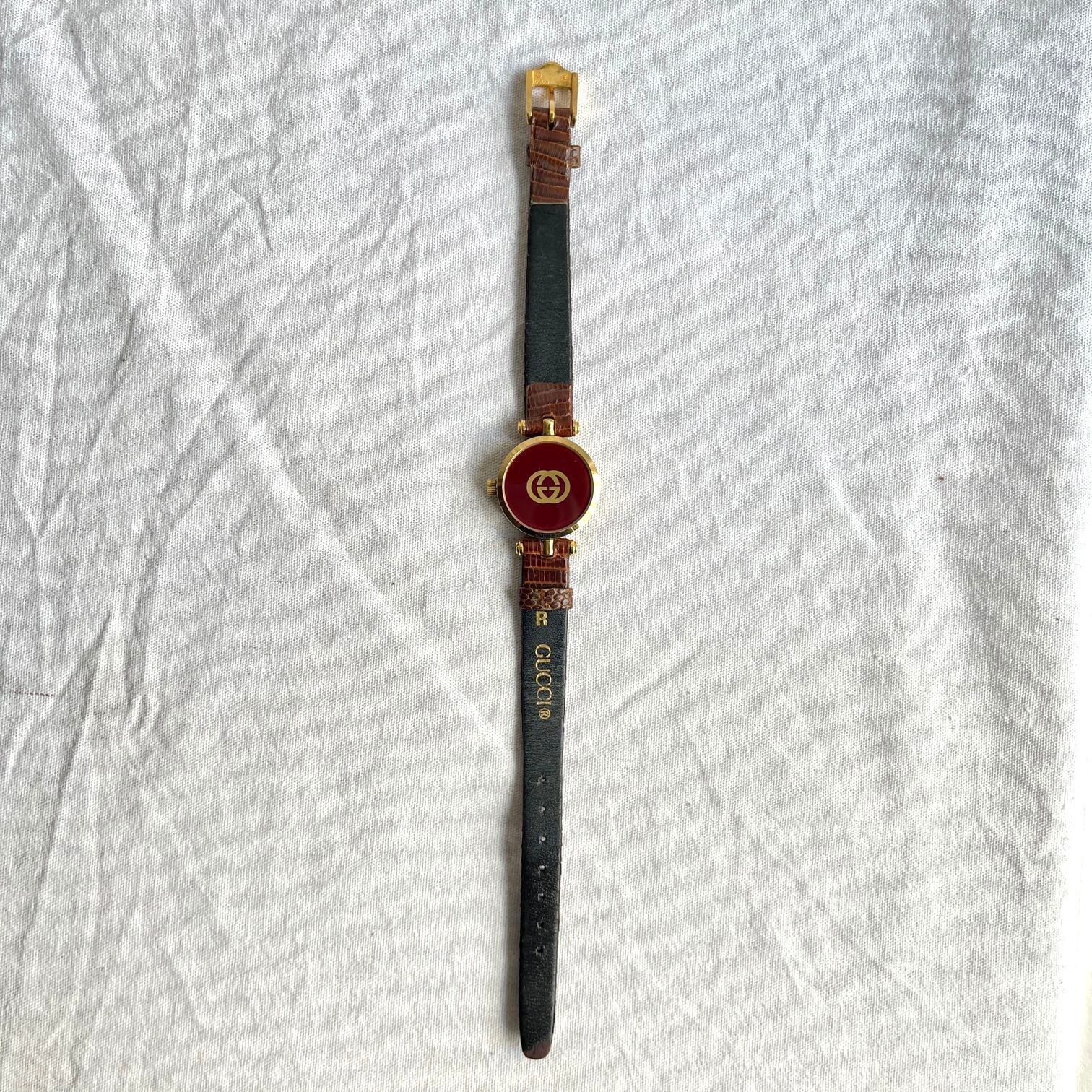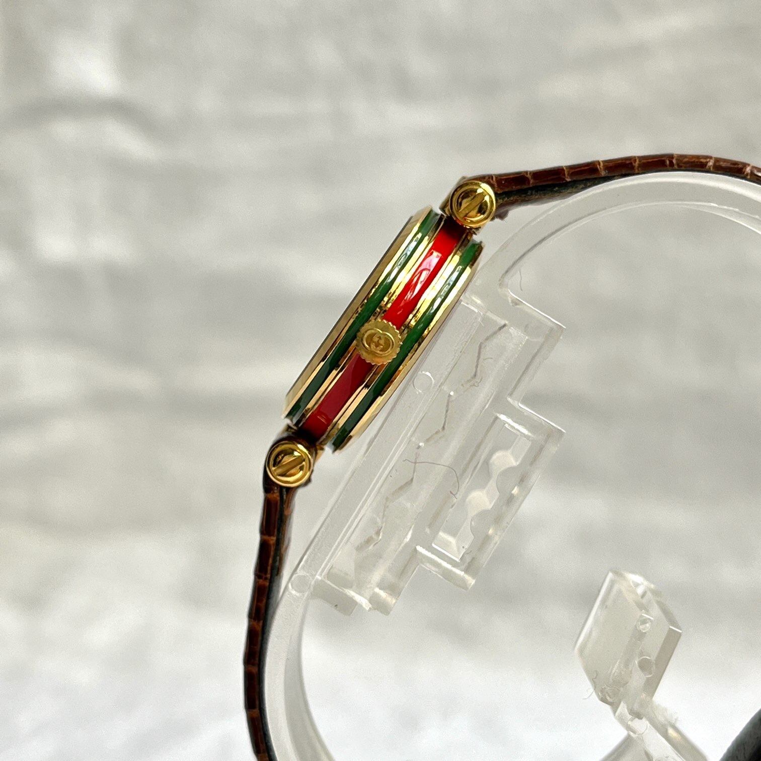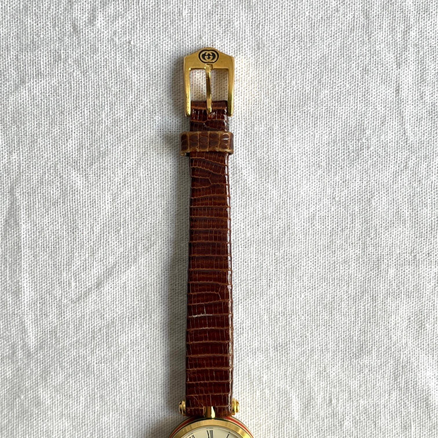 GUCCI “Side Sherry Line” Round Watch — Brown Leather Belt —