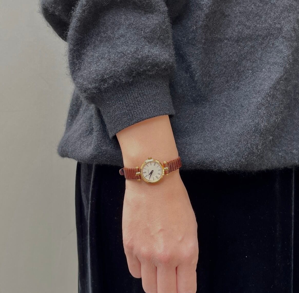 色:オフホワイト(文字盤)、グリーン×レッド×ゴールド(ケース)、ブラウン(ベルト)