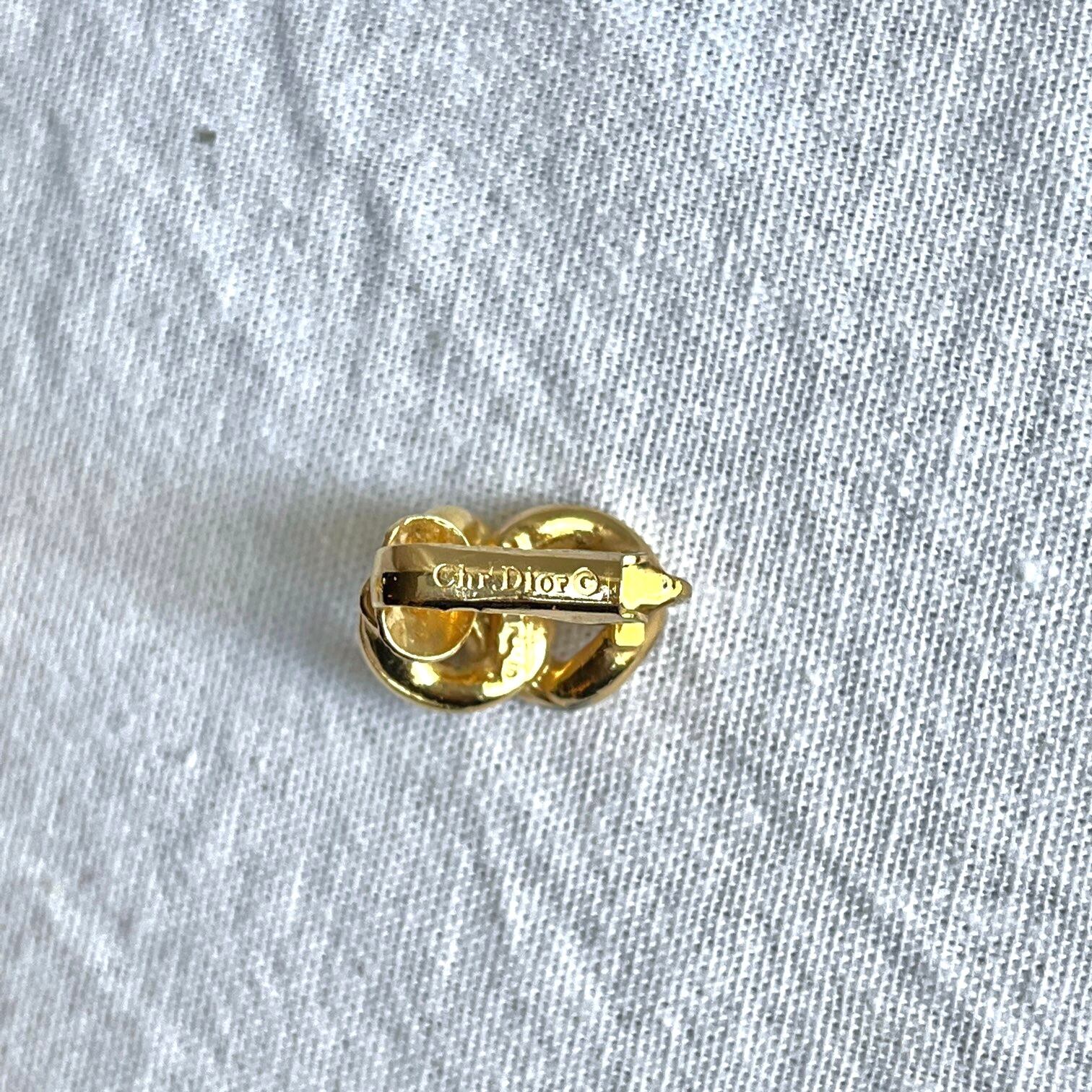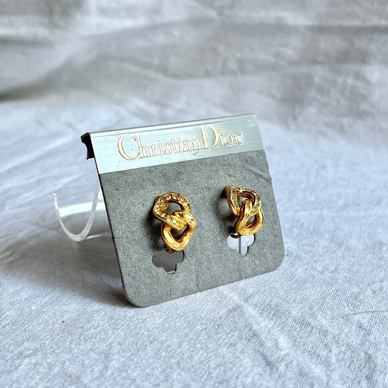 カーブの効いたインフィニティデザインが芸術的なDiorイヤリング☆上部に施されたラインストーンがキラキラと輝くデザイン。小ぶりで付けやすく、ユーズフルにもオケージョンにもオススメです!