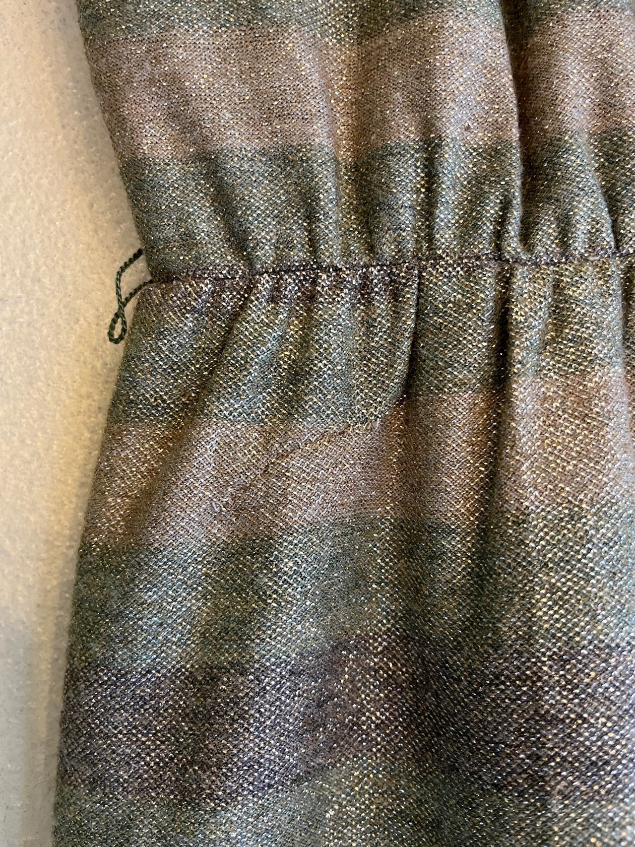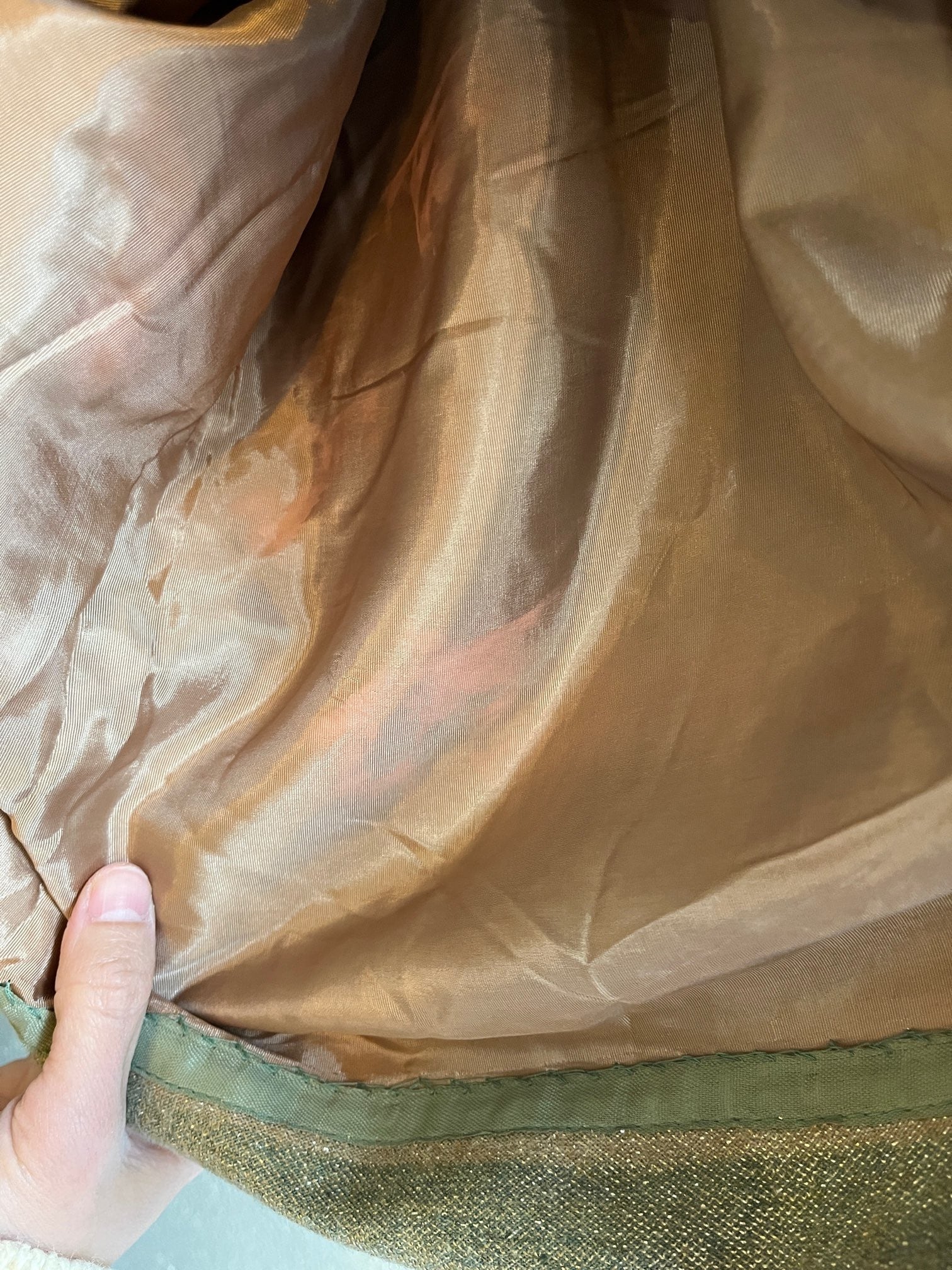 *裏地に変色有、前ウエスト付近に補習有(写真、参照)