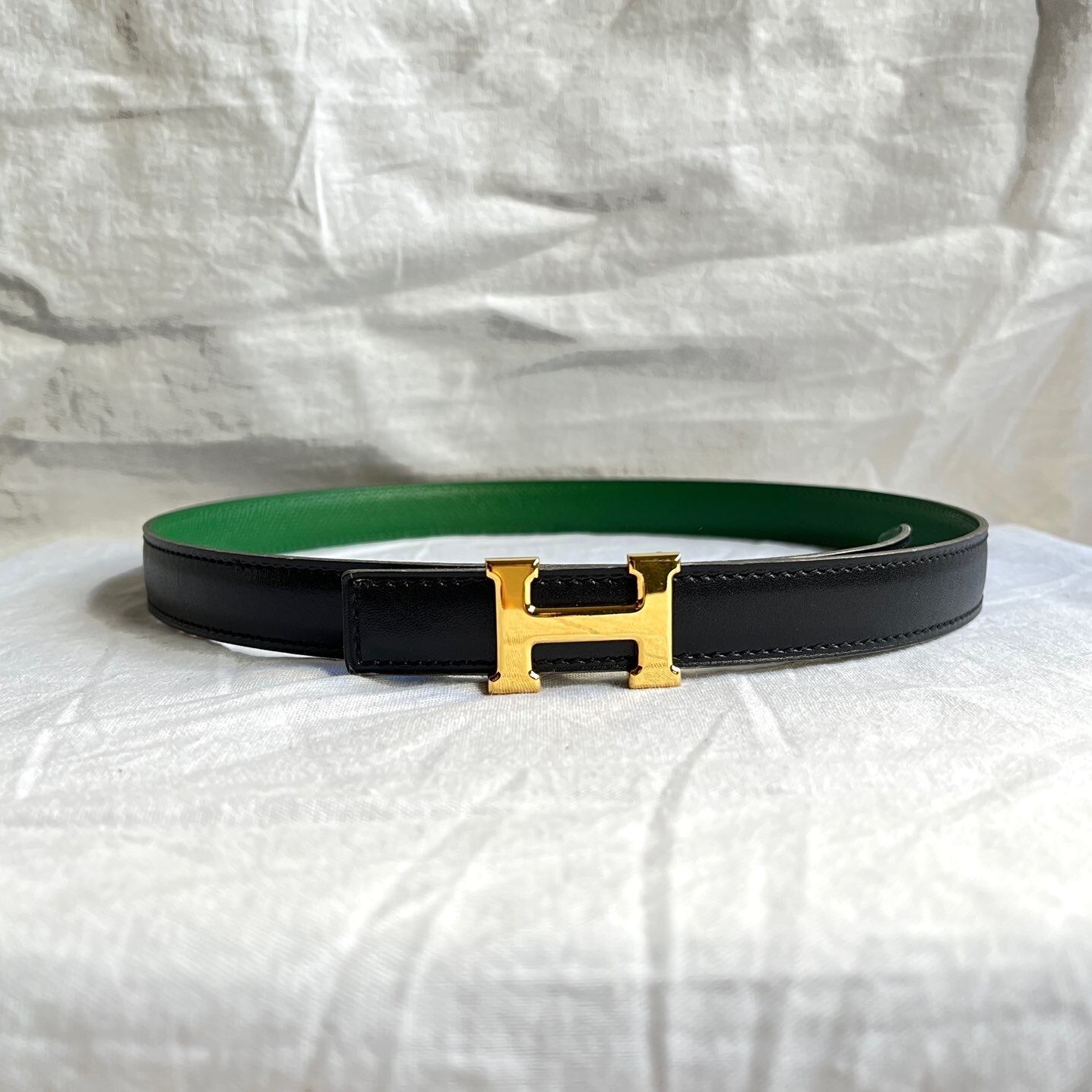 HERMES “Black×Green” Reversible Leather Belt — Deadstock —